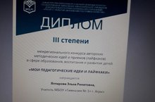 Даже находясь дома, наши учителя продолжают принимать участие в профессиональных конкурсах. Яппарова З.Р. учитель английского языка и литературы стала призером межрегионального конкурса авторских методических идей и приемов (лайфхаков) в сфере образования, воспитания и развития детей в номинации "Авторские педагогические лайфхаки во внеурочной деятельности и дополнительном образовании." Поздравляем! Желаем дальнейших творческих успехов!