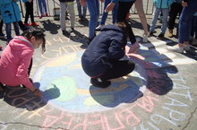 Сегодня в пришольном лагере прошло мероприятие "День России". Ребята пели гимн и рисовали рисунки на асфалььте.