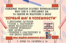 Наша школа с 1 марта открывает группы по подготовке к школе «Первый шаг к успешности».