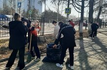 В ходе субботника были убраны мусор, листва и ветки, побелены деревья. -