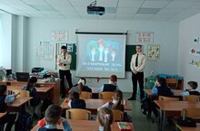 На этой неделе наши выпускники,а теперь студенты колледжа государственной и муниципальной службы города Ижевска Манохин Эдуард и Курбанов Ильнар приехали к нашим учащимся 9 классов с интересной презентацией «История создания и развития МВД России».