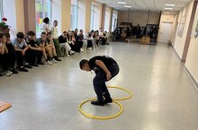 На еженедельном школьном построении директор школы напомнила учащимся 9-11 классов о важности соблюдения внешнего вида. Также напомнили о безопасности на дорогах.