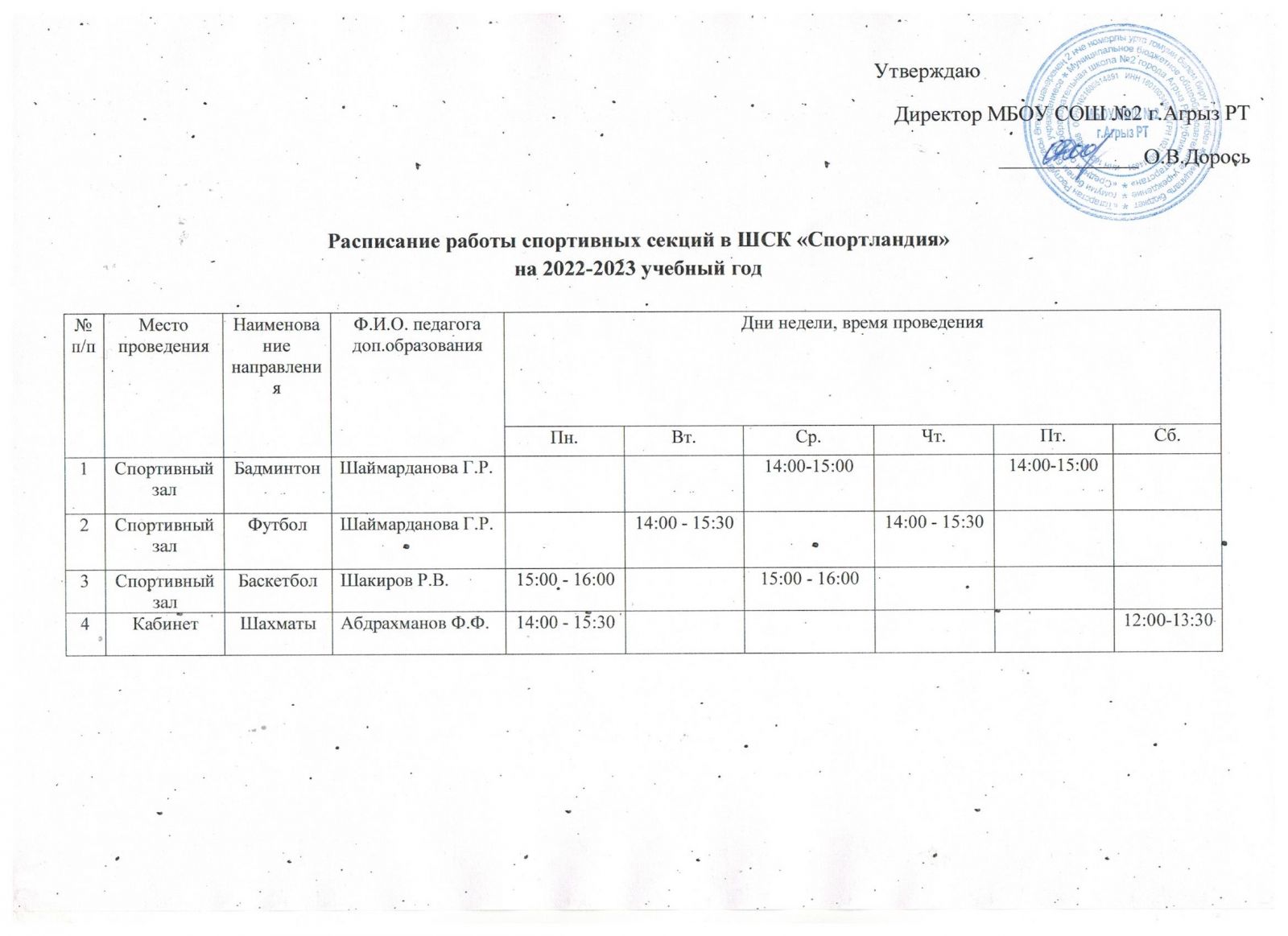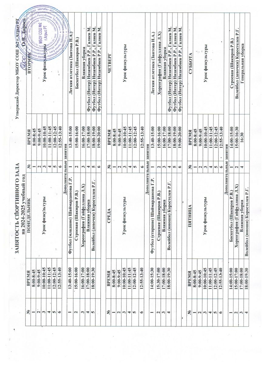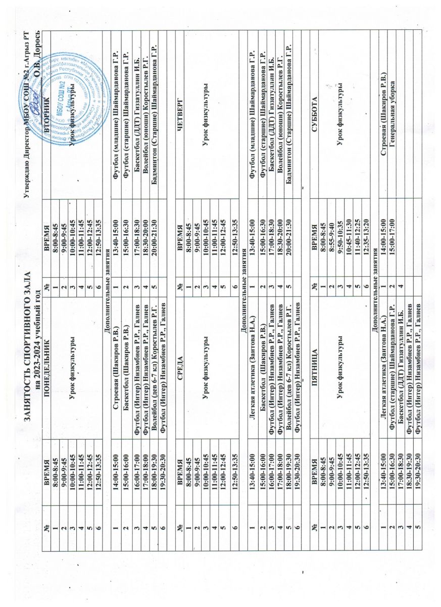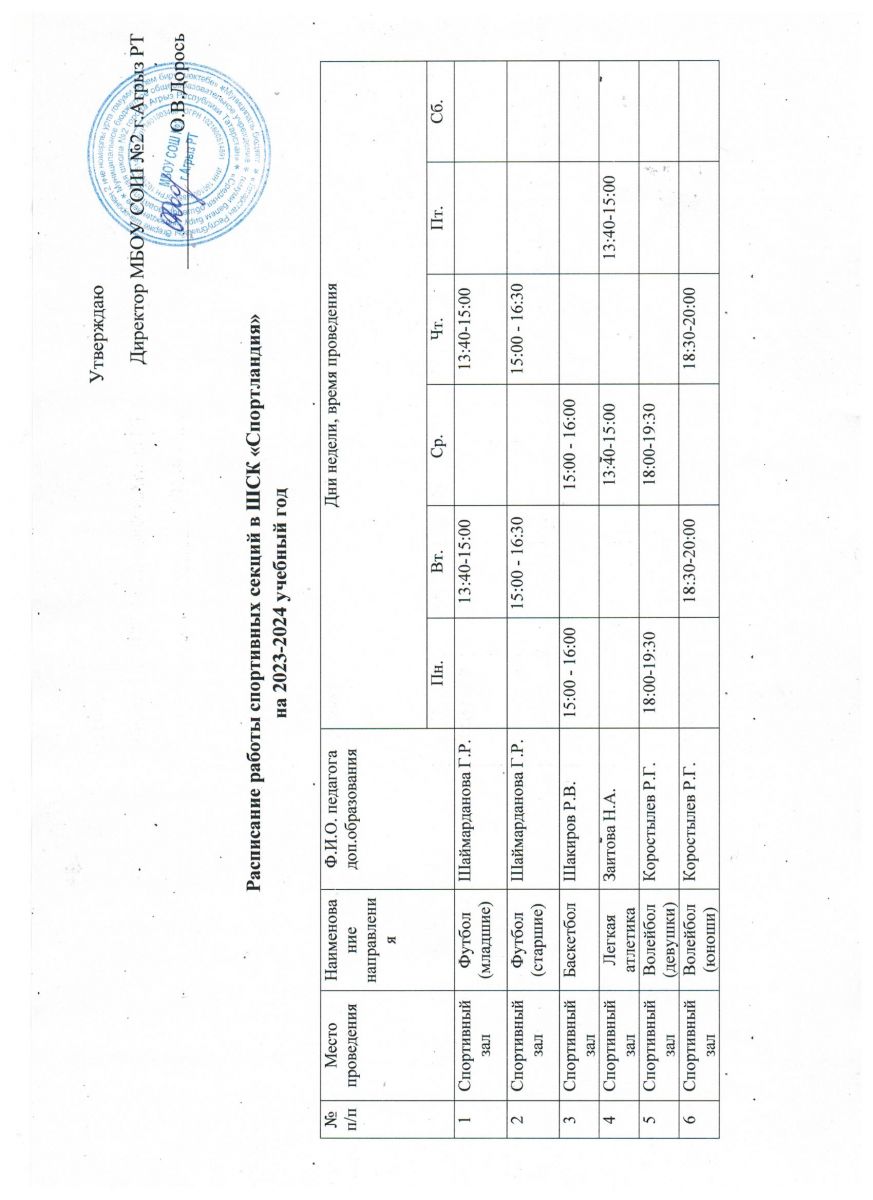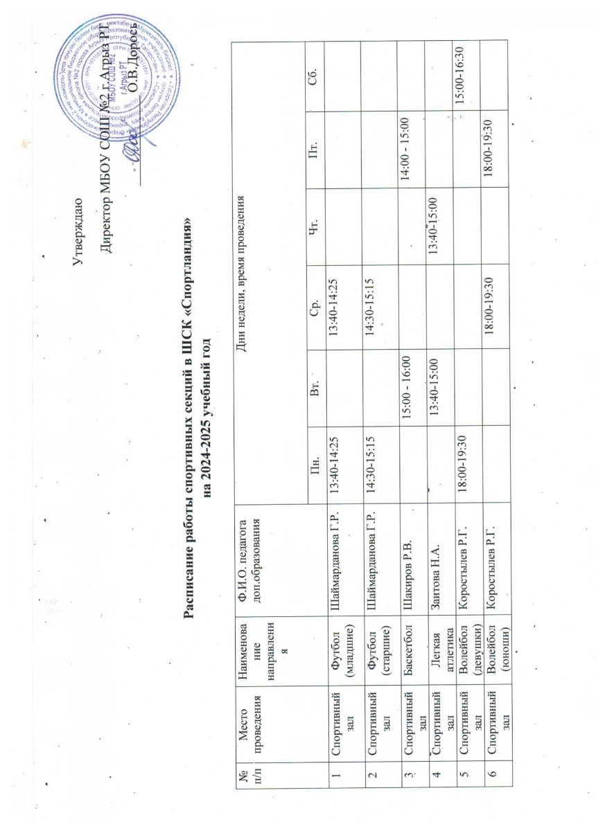 Расписание работы спортивных секций