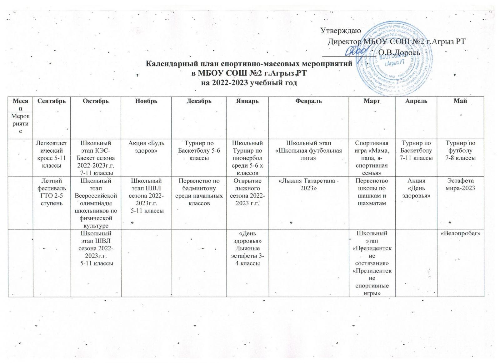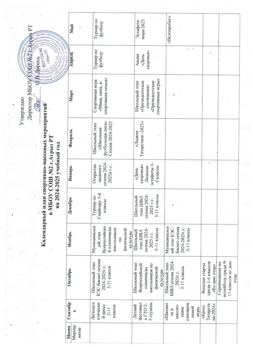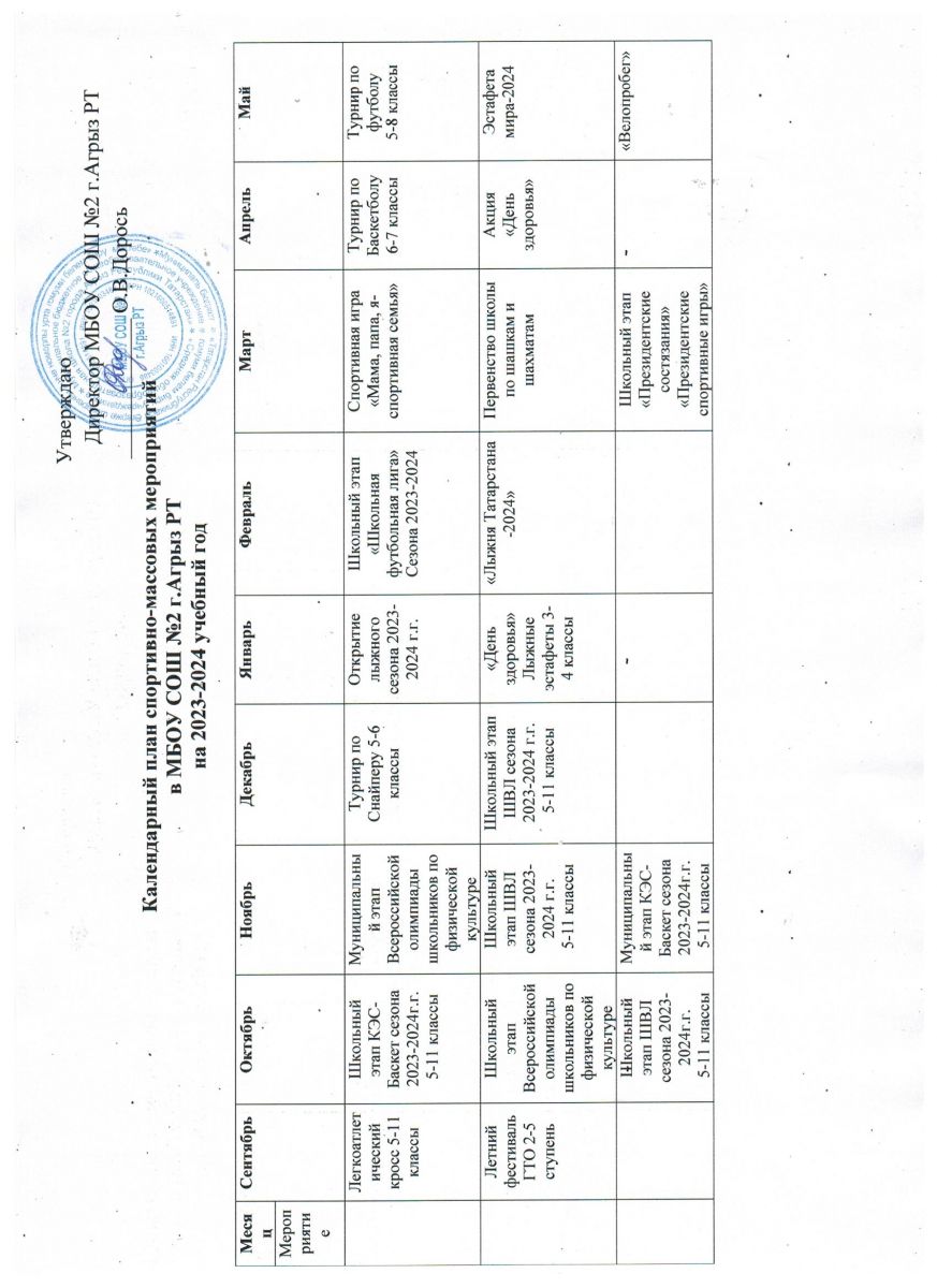 Календарный план спортиавно-массовых мероприятий в МБОУ СОШ № 2