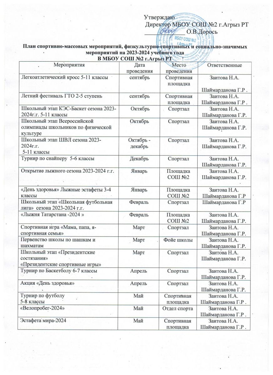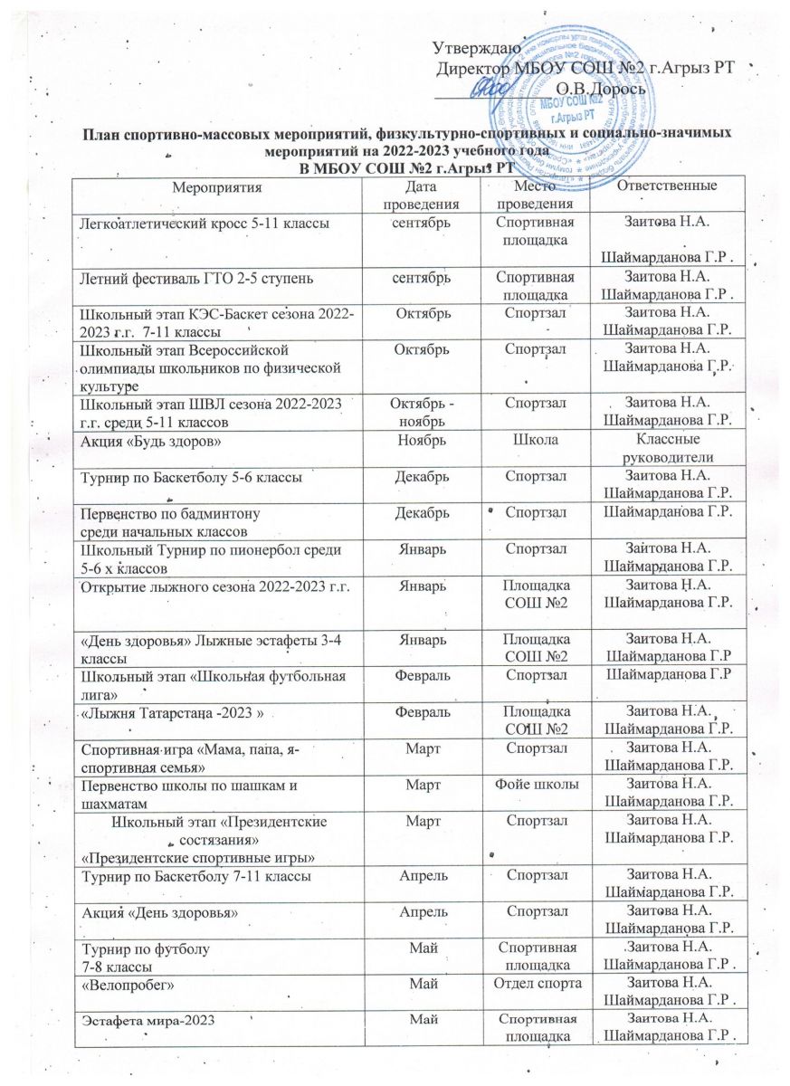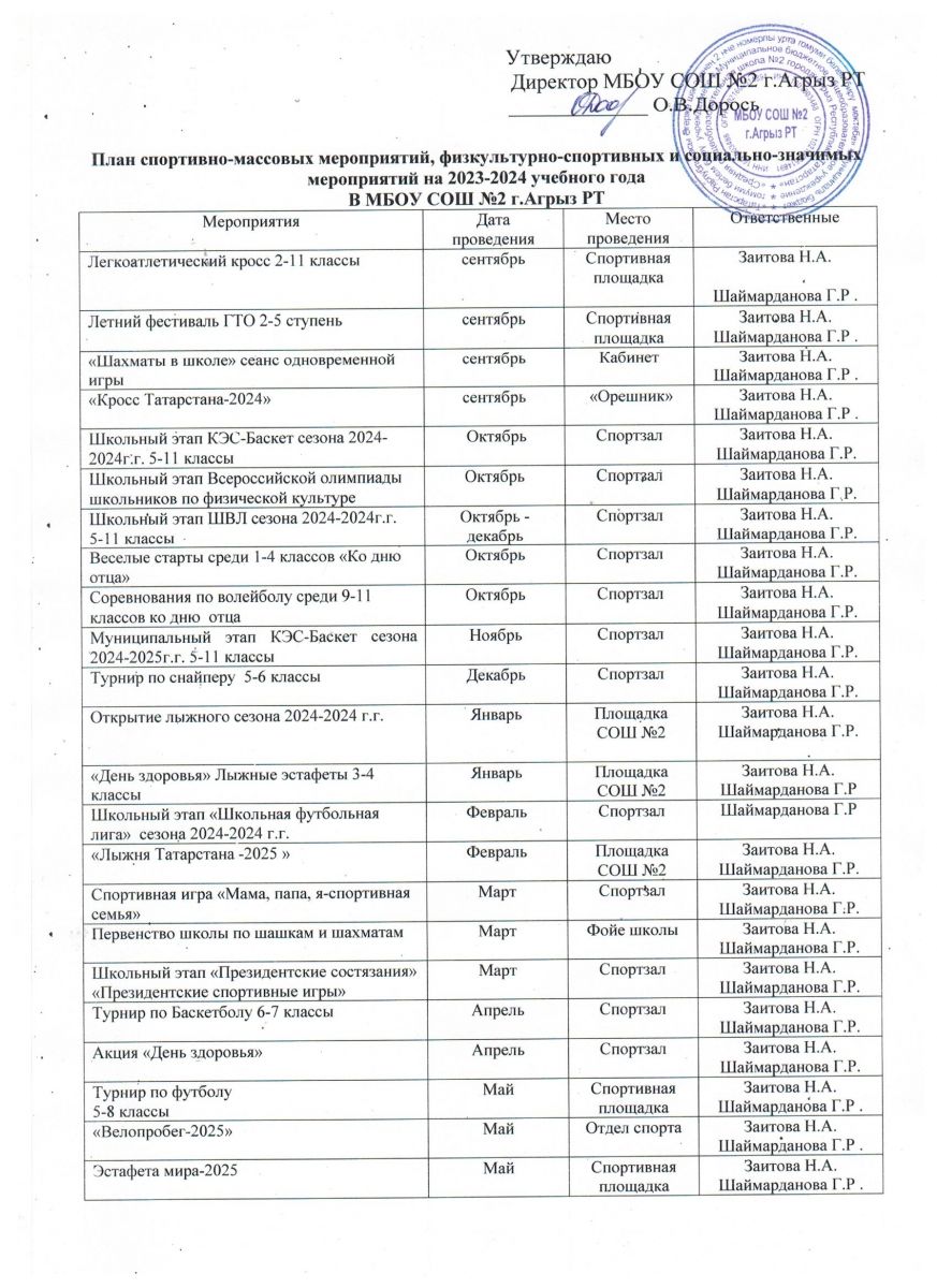 Календарный план спортиавно-массовых мероприятий в МБОУ СОШ № 2