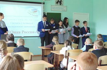 9 сентября совет старшеклассников посвящал учеников 4 "а" класса в участников детского движения "ЮНАЯ РОССИЯ"