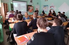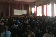 В школе был организован просмотр фильма "Солдатик". История о волнующих и героических событиях, произошедших в жизни самого маленького солдата — героя Великой Отечественной Войны, шестилетнего Сережи Алешкова. Он потерял всех своих родных, попал в действующую армию. С шестилетним мальчиком затеяли игру в солдатика, чтобы сохранить ему детство, а он, чтобы соответствовать этому почетному для него званию, стал настоящим защитником Родины.