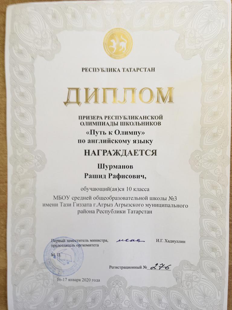 Республиканская олимпиада школьников по английскому языку «Путь к Олимпу» 20.01.2020