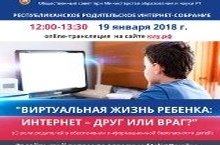 19.01.2018года с 12.00 до 13.30 состоится Республиканское родительское интернет-собрание «Виртуальная жизнь ребенка: интернет – друг или враг?».