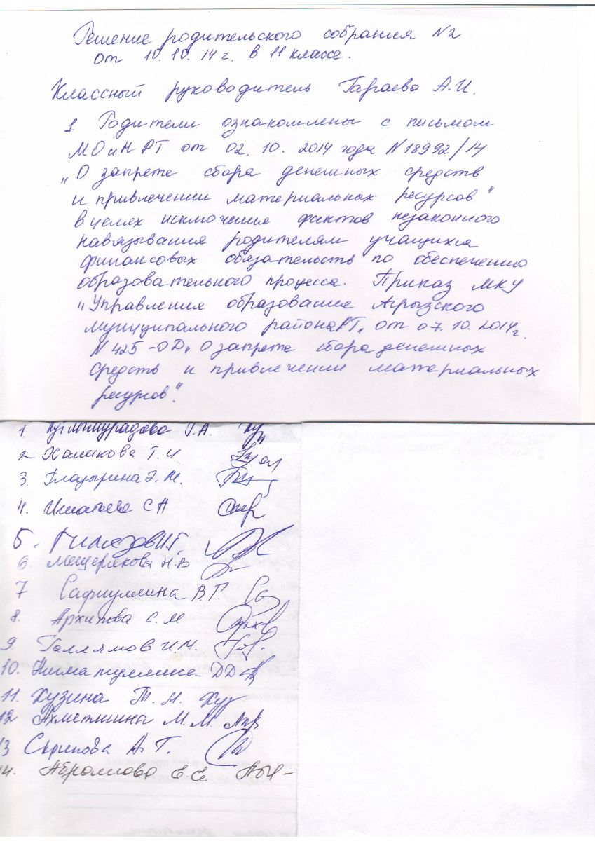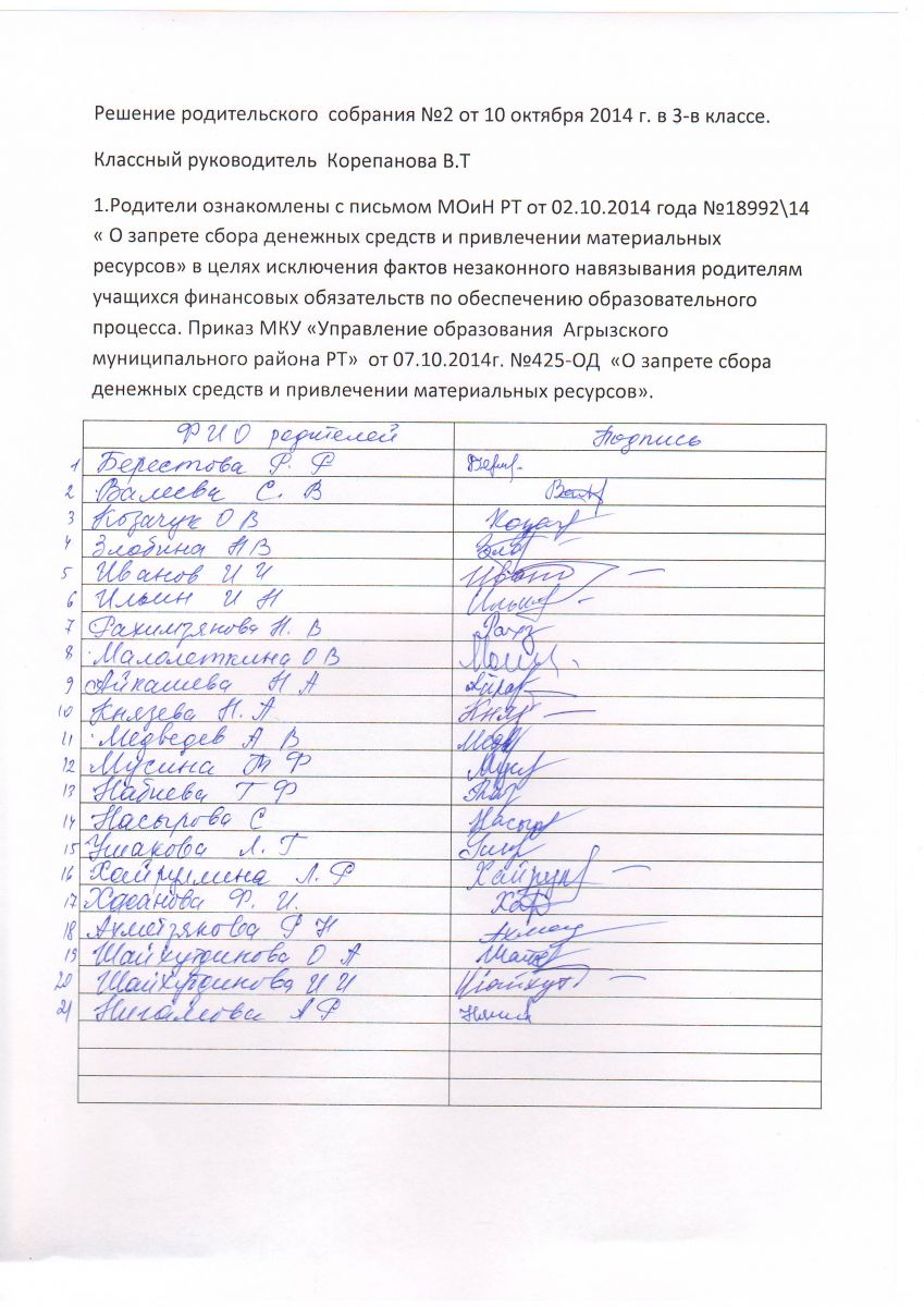 Выписки из протоколов родительских собраний