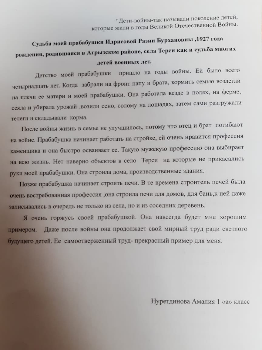 Судьба моей прабабушки Идрисовой Разии Бурхановны - Нуретдинова Амалия, 1а класс