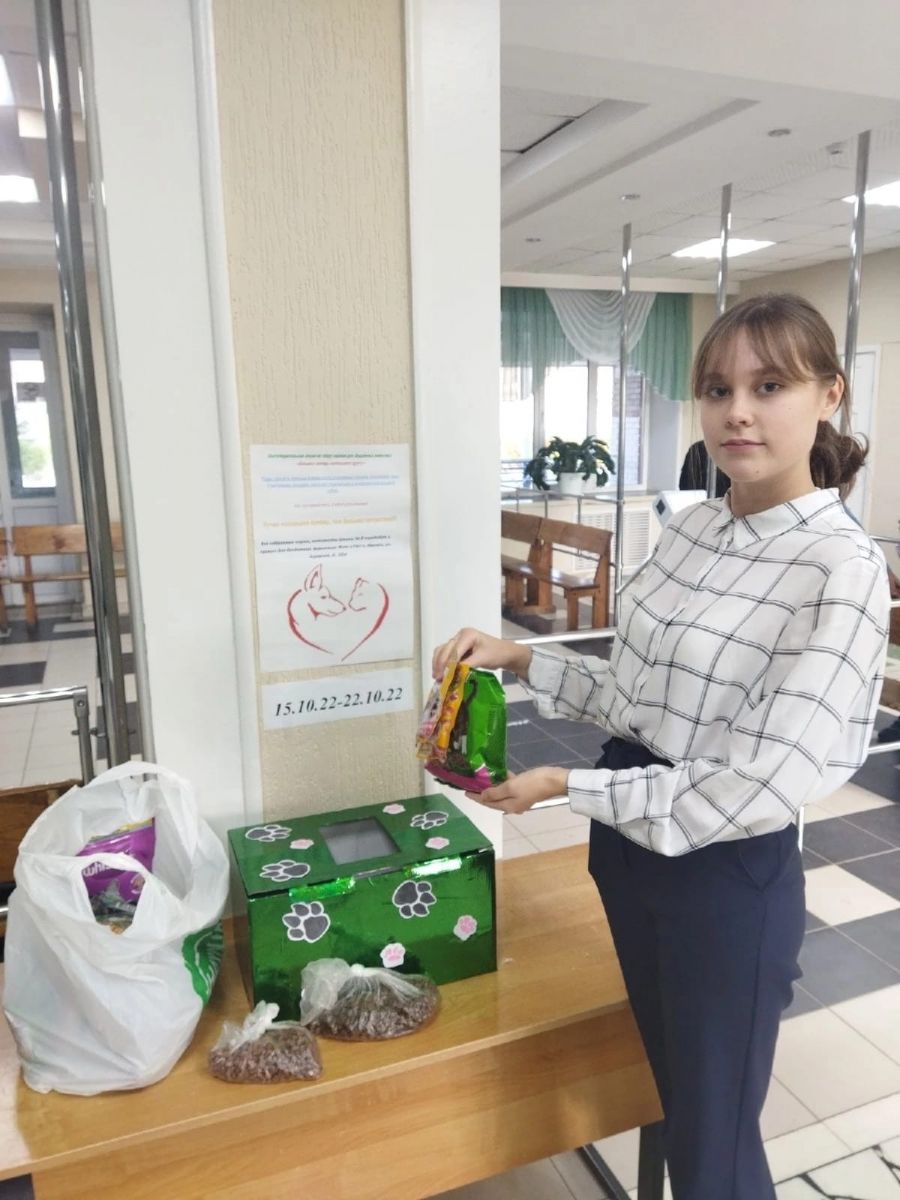 Опубликовано: 31.10.2022В нашей школе с 15 по 22 октября проводилась Благотворительная акция по сбору кормов для бездомных животных "Большая помощь маленькому другу".