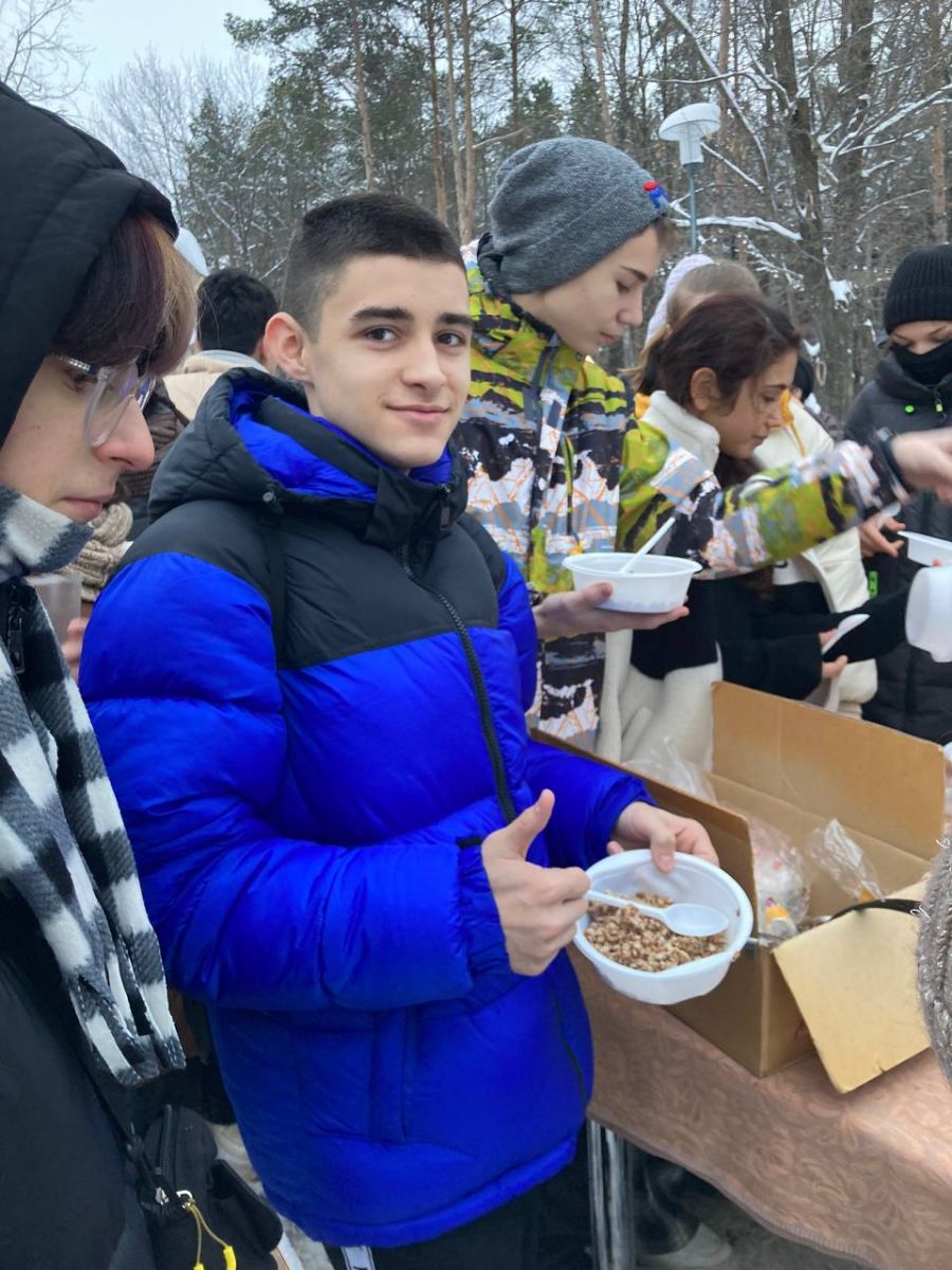 Опубликовано: 25.11.2022Ученики 8А класса приняли участие в муниципальной военно-спортивной игре «ZaМИР!», организованной подростковым клубом «Ровесник». Игра прошла в парке «Орешник». Участники успешно прошли такие этапы как разборка-сборка автомата Калашникова, оказание первой помощи при травме голени, стрельба из пневматической винтовки, метание снаряда, подтягивание и разведение костра в зимних условиях. В конце игры учеников накормили настоящей солдатской кашей - гречкой с тушенкой. Поздравляем учеников нашей школы с почетным ТРЕТЬИМ местом!
