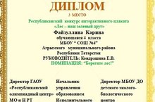 Поздравляем!!! Учащиеся 4а класса Файзуллина Карина и Капилова Эльза заняли призовое место в Республиканский конкурс интерактивного плаката «Лес – наш зеленый друг» в номинации «Берегите лес!»