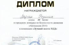 Ученики 11 класса приняли активное участие в городском конкурсе по безопасности движения "Автосессия 2018". Победители были отмечены дипломами и ценными призами.