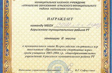 Команда школы заняла 2 место в муниципальном этапе Всероссийских спортивных игр школьников "Президентские спортивные игры" среди учащихся 2003-2004 г.р. Молодцы!