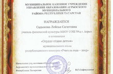 В муниципальном этапе конкурса "Учитель года 2015" преподаватель физической культуры Садыкова Лейсан Сагитовна стала победителем в номинации "Сердце отдаю детям".