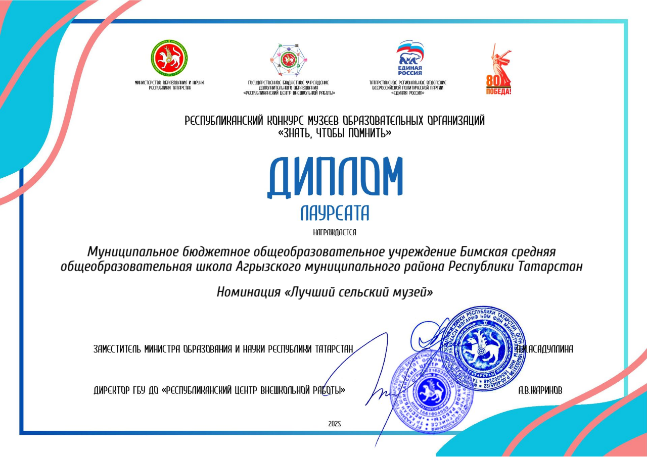 | Короткое название: | МБОУ Бимская СОШ Агрызского района РТ |