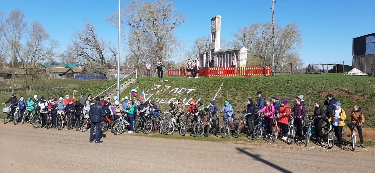 Опубликовано: 07.05.2022Субботнее утро в Бимской школе началось с велопробега. С утра учащиеся всех 7 деревень отправились в школу на велосипедах. Собрались всё у монумента павшим воинам в центре села Бима. Провели митинг, где выступал и Глава Бимского сельского поселения Михайлов Э. И.