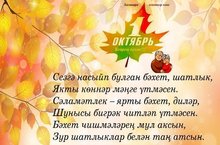 1 октябрь - Халыкара өлкәннәр көне. Бу бәйрәм барлык өлкән яшьтәге кешеләргә намуслы хезмәтләре, аларның олы тормыш тәҗрибәсе, игелекләре, зирәклекләре өчен тирән ихтирам һәм җылы рәхмәт сүзләрен җиткерү өчен менә дигән мөмкинлек бирә. 30 нчы сентябрь көнне безнең мәктәптә бу көнне бәйрәм итүгә багышланган чара булып узды, укучылар өлкәннәр өчен концерт номерлары әзерләделәр. Аннары өлкәннәр чәй өстәле артында чәй эчтеләр.