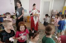 Сегодня для детей средней группы организовали маленький праздник, посвящённый неделе Масленицы. Детей познакомили с русским народным праздником, играли в подвижные игры, изготовили своими руками куклу- Масленицу. В конце мероприятия угощались блинами.