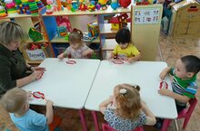 На логопедических занятиях по подготовке к обучению грамоте продолжаем изучать гласные звуки. Дети учатся слышать и правильно произносить звуки, обозначать их буквами, соединять в слоги: АУ- УА; ИА-АИ; АЭ-ЭА; МЭ-ЭМ и другие. Занятия проходят интересно и познавательно.