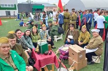 Готовимся к театрализованному выступлению 9 мая на стадионе (репетиция) настоящий привал.