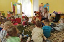 Сегодня на ознакомлении с окружающим миром в группе раннего возраста прошла встреча с маленьким и большим медведем. Детки рассматривали, сравнивали и знакомились с их частями тела. Конечно же, не обошлось без веселой игры "Мишка косолапый".