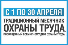 В период с 1 по 30 апреля проводится месячник по охране труда, приуроченный к Всемирному дню охраны труда, который ежегодно отмечается 28 апреля. Цель проведения месячника: пропаганда культуры охраны труда, предупреждение производственного травматизма и профессиональных заболеваний, повышение уровня соблюдения работниками требований нормативных правовых актов в сфере охраны труда, а также обеспечение безопасных условий труда на рабочих местах.