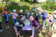 "Ах, как красиво!" - воскликнули дети, увидев свои игровые участки, где проводят большую часть своего времени на прогулке. Родители 2 младшей, средней, старшей групп не пожалели своего драгоценного времени, и пришли покрасить игровые участки. От лица сотрудников детского сада и детишек, хотим сказать всем нашим родителям: "ОГРОМНОЕ ВАМ СПАСИБО!" Вы подарили ребятам неописуемый восторг! Домики, лодки, машины, веранды блистают волшебными, яркими красками. Как приятно детишкам резвиться, бегать и играть в такой красоте. СПАСИБО!