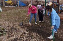 "Только вместе, только дружно, помогать природе нужно! ". Под таким девизом дети подготовительной группы вышли на субботник. -