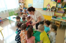 С целью формирования представлений у детей о весенних изменениях в природе,о жизни животных в лесу,во второй группе раннего возраста прошло открытое занятие по ознакомлению с окружающим миром "Разбудим Мишку" -