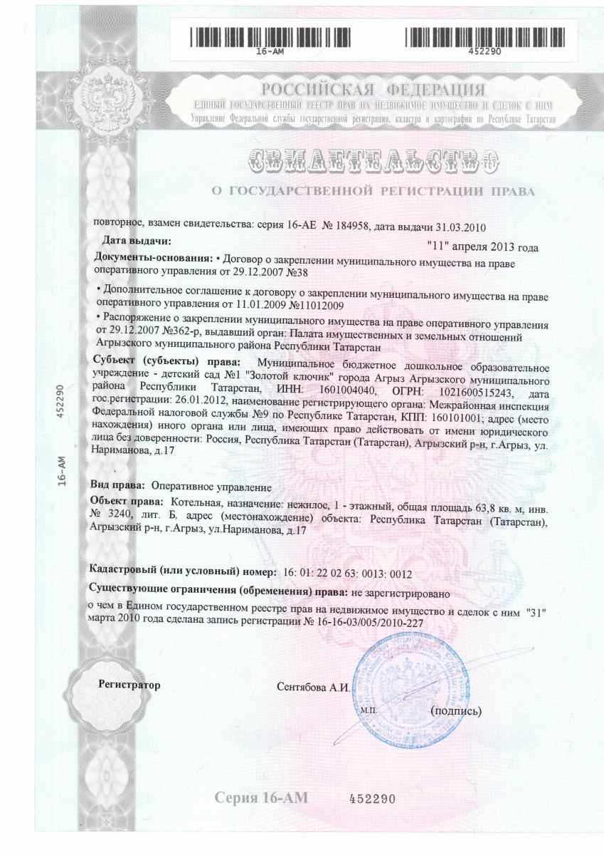 Муниципальное бюджетное дошкольное образовательное учреждение - детский сад №1 "Золотой ключик" города Агрыз Агрызского муниципального района Республики Татарстан