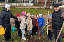 Дети с большим интересом и старанием посадили саженцы липы.