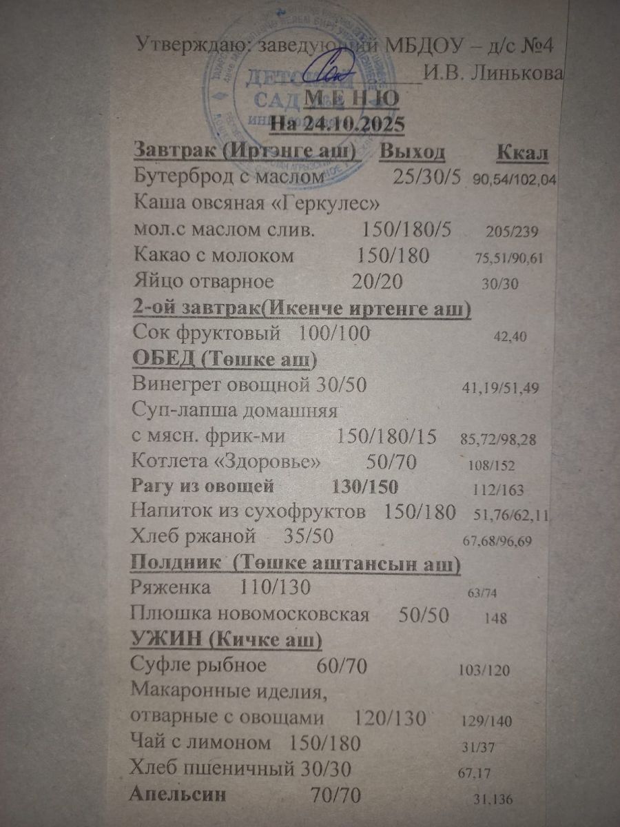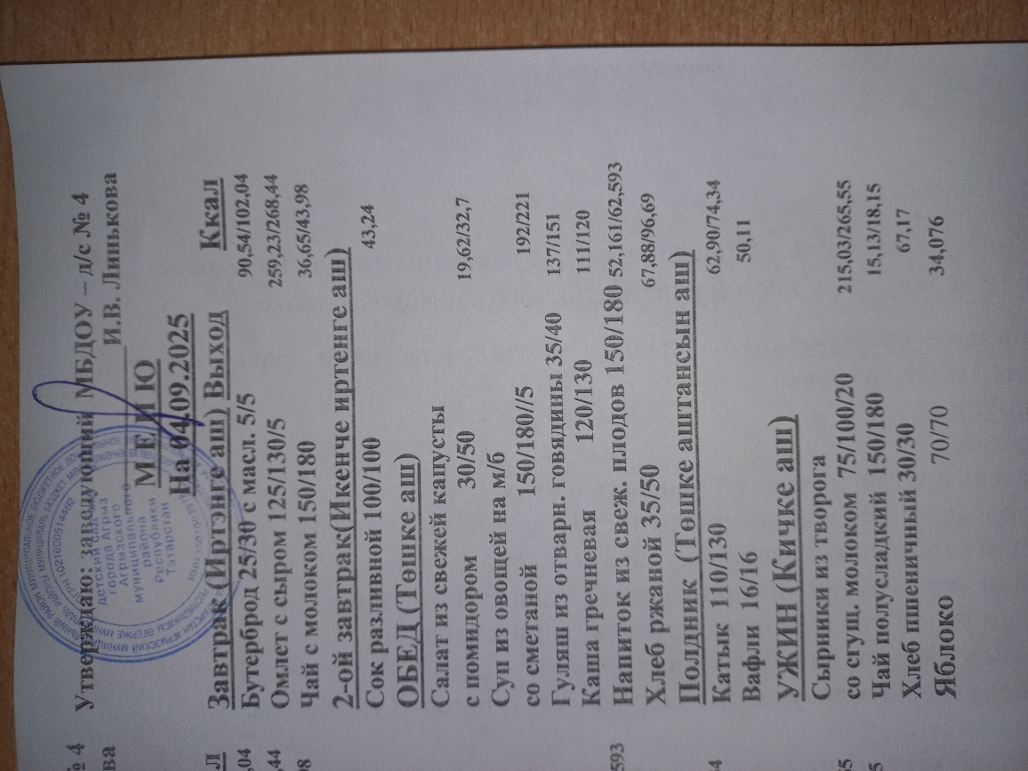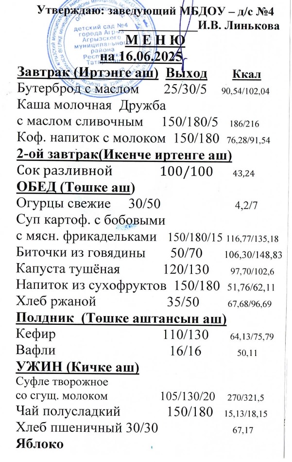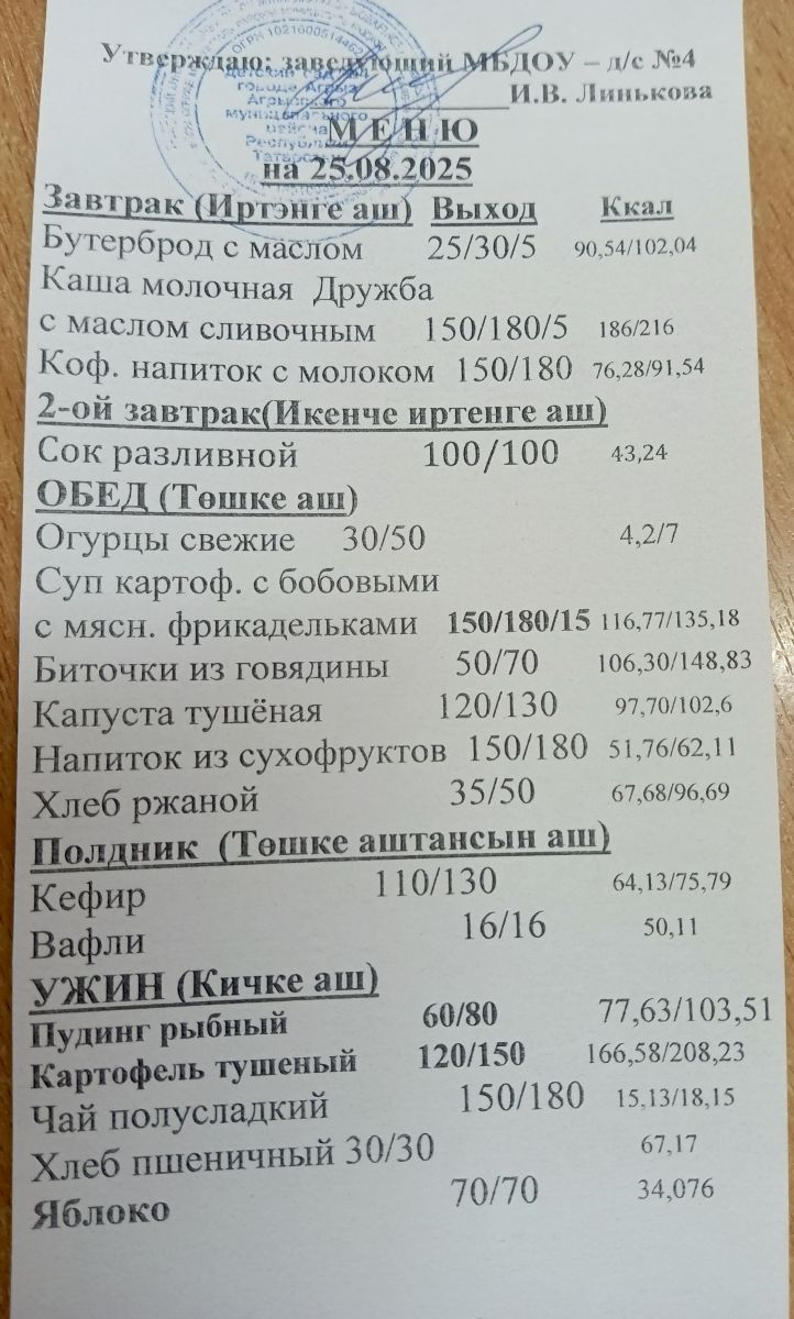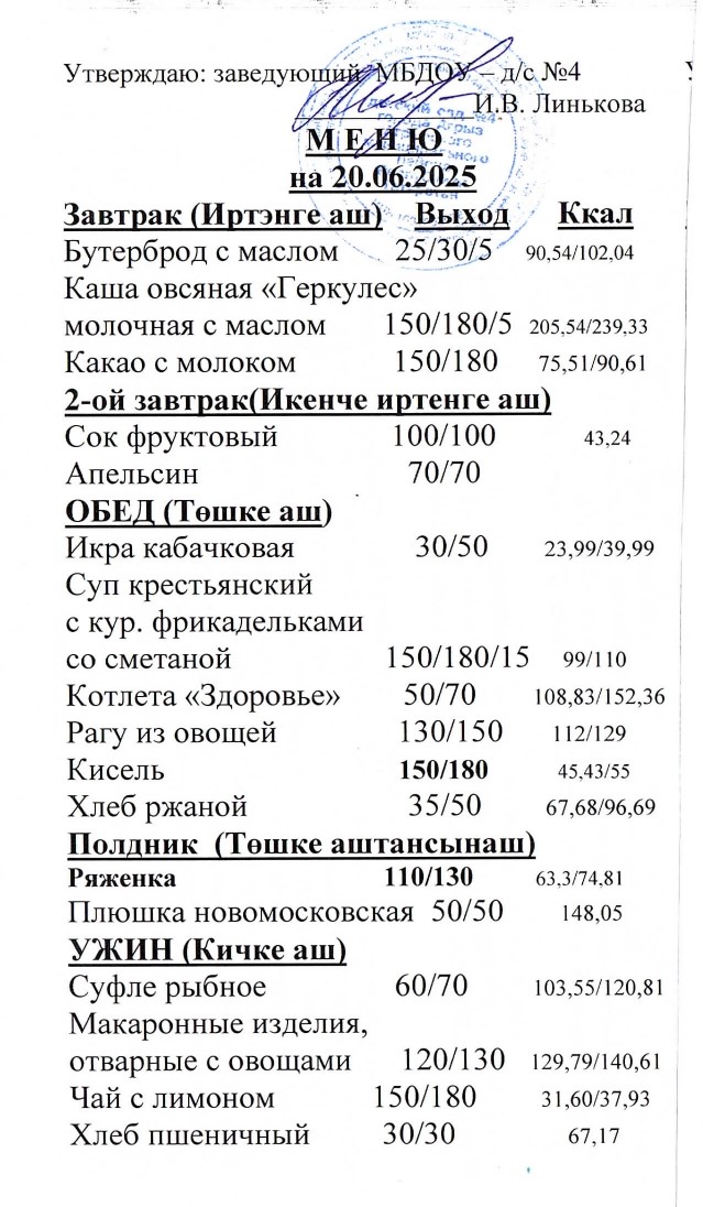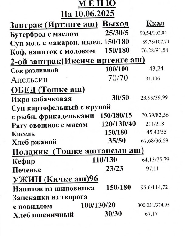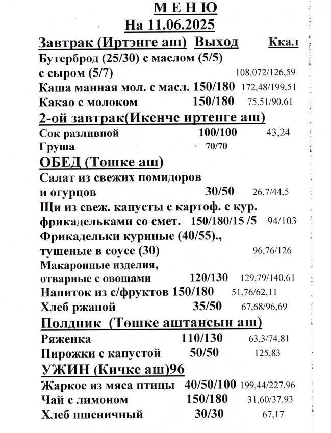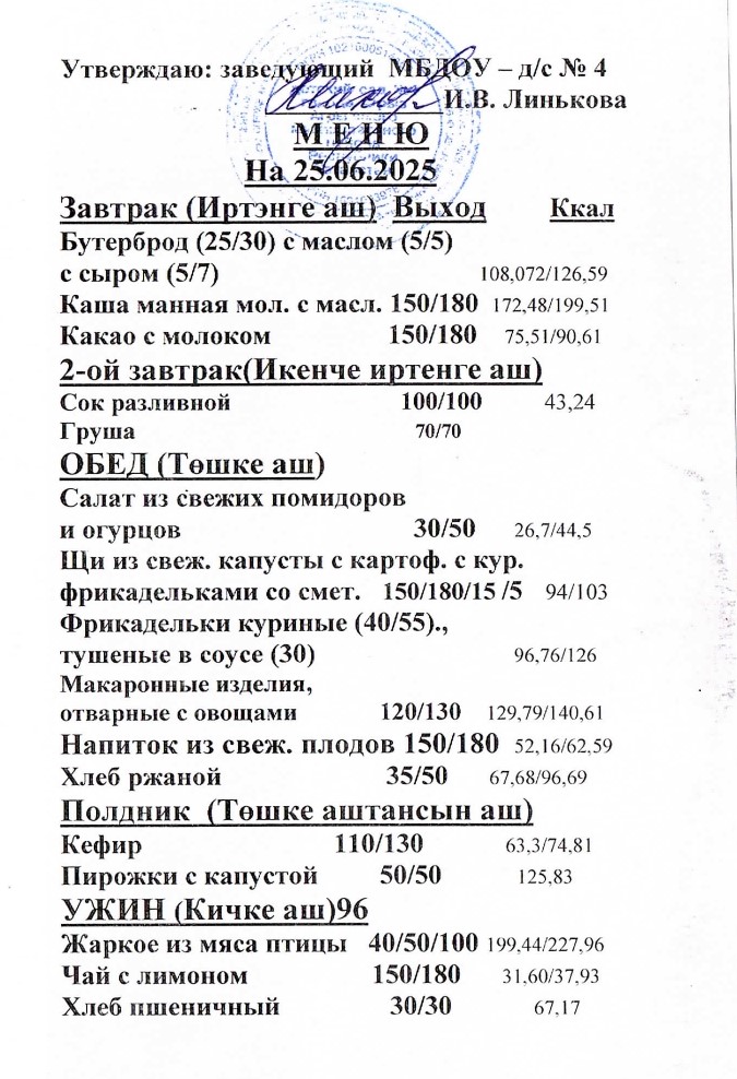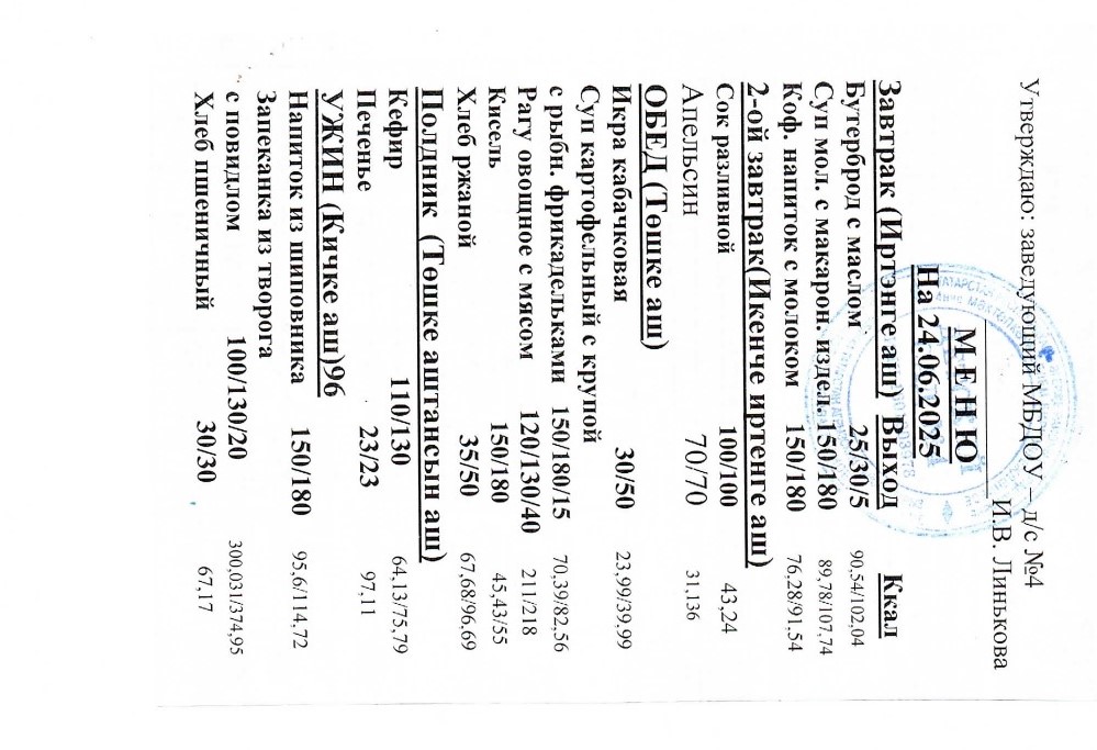 Меню с 12 часовым прибыванием 2024-2025 (лето)