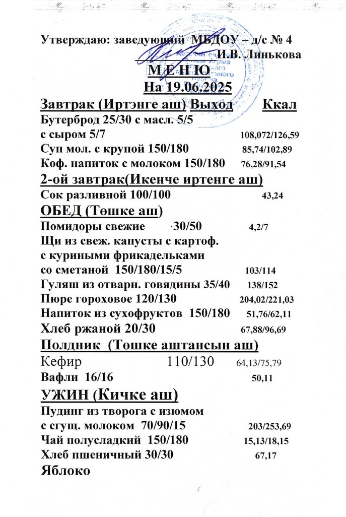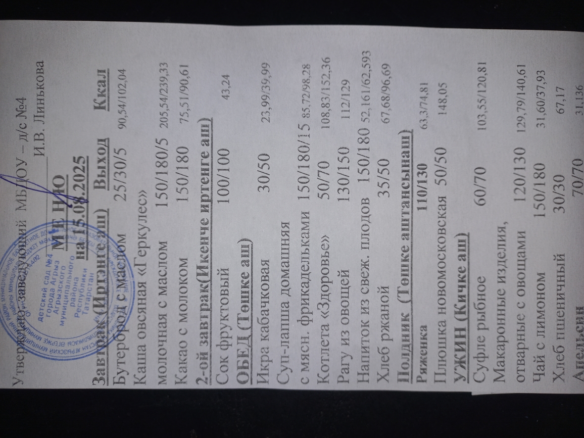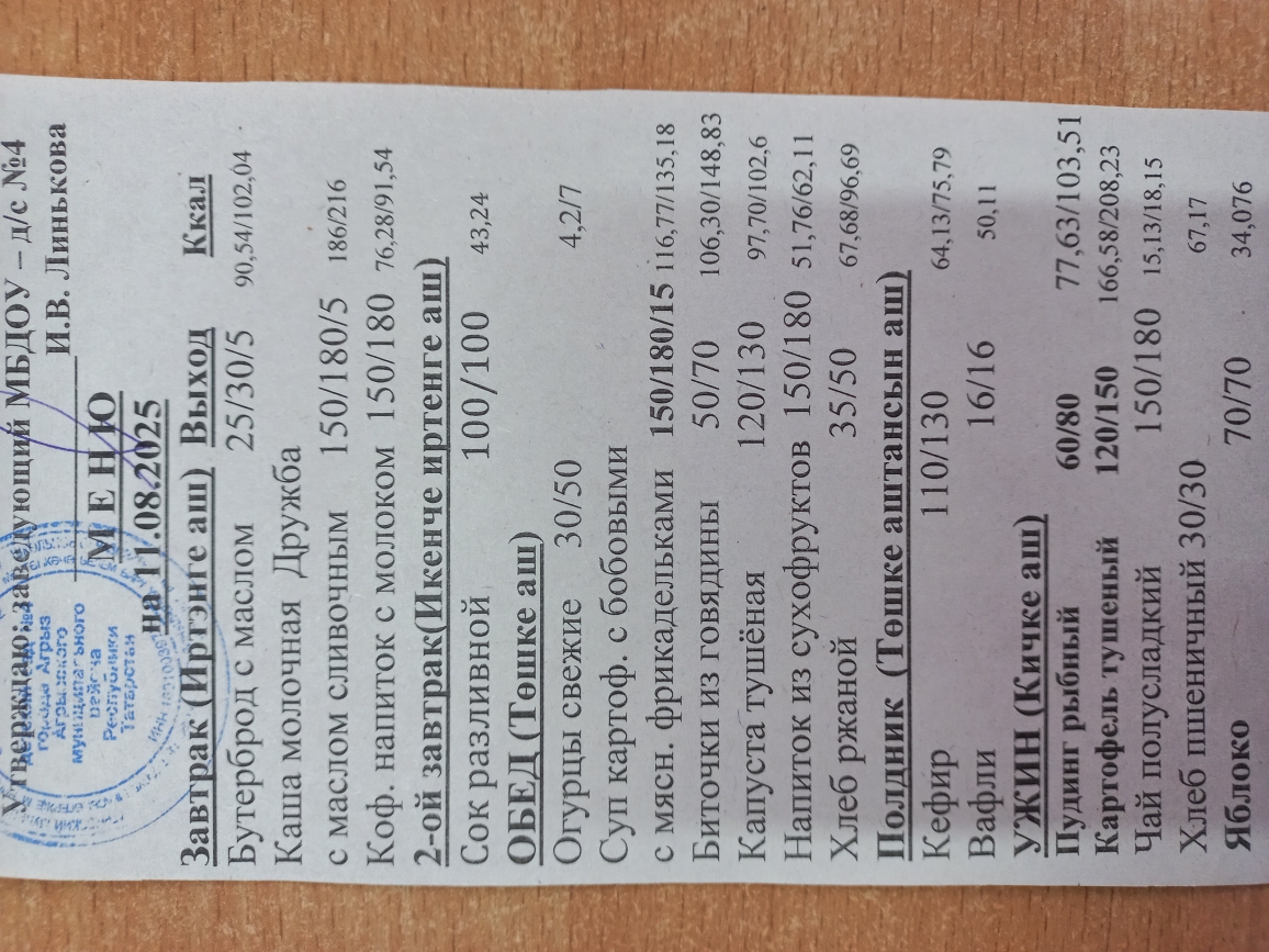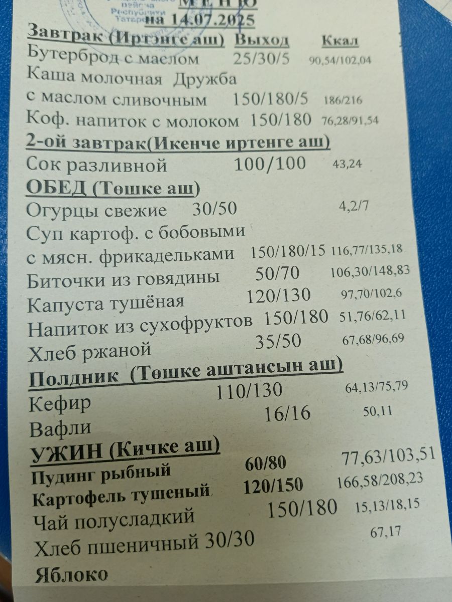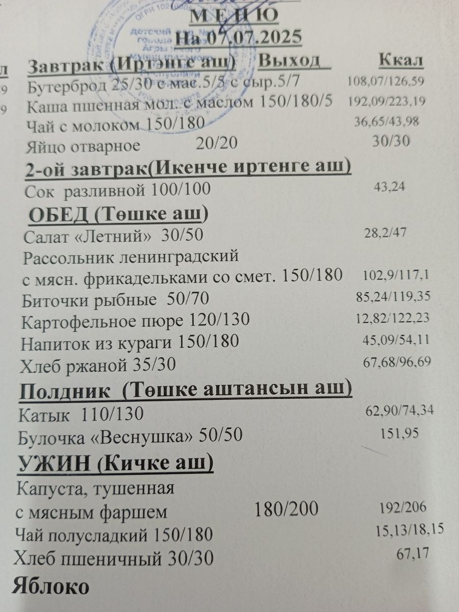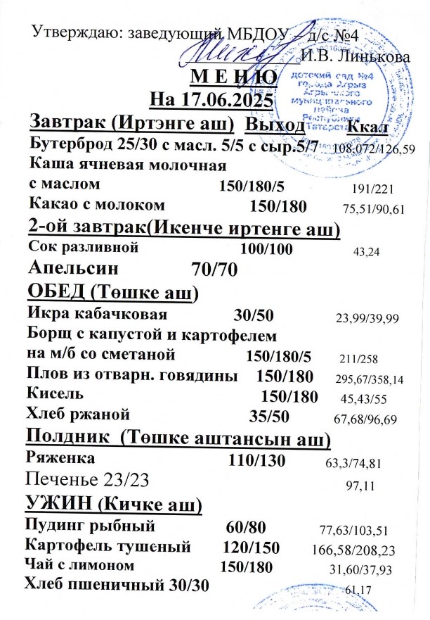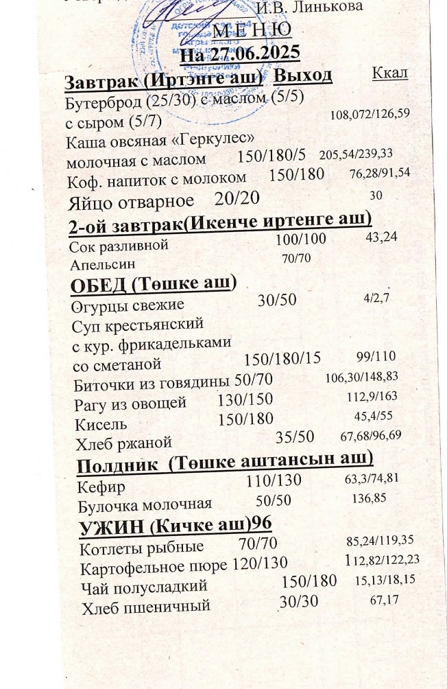 Меню с 12 часовым прибыванием 2024-2025 (лето)