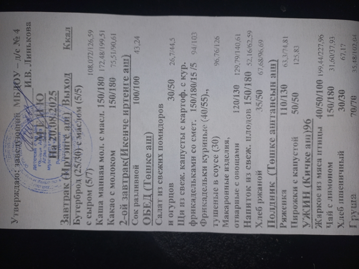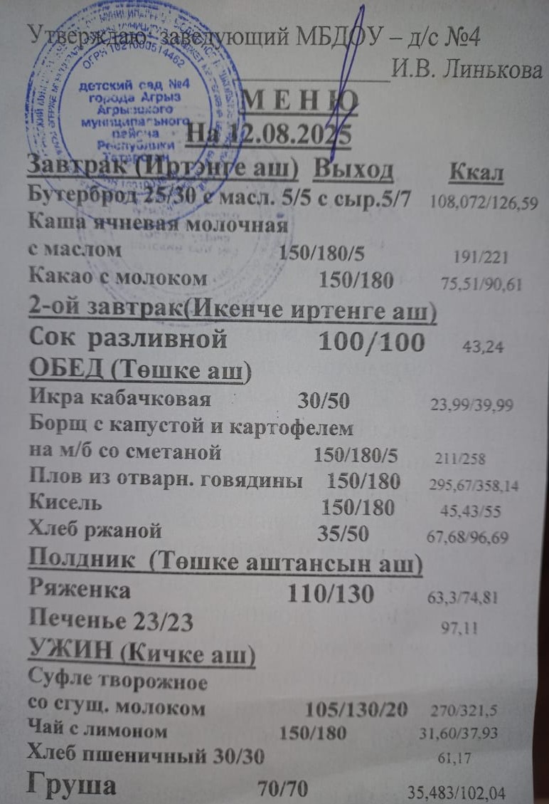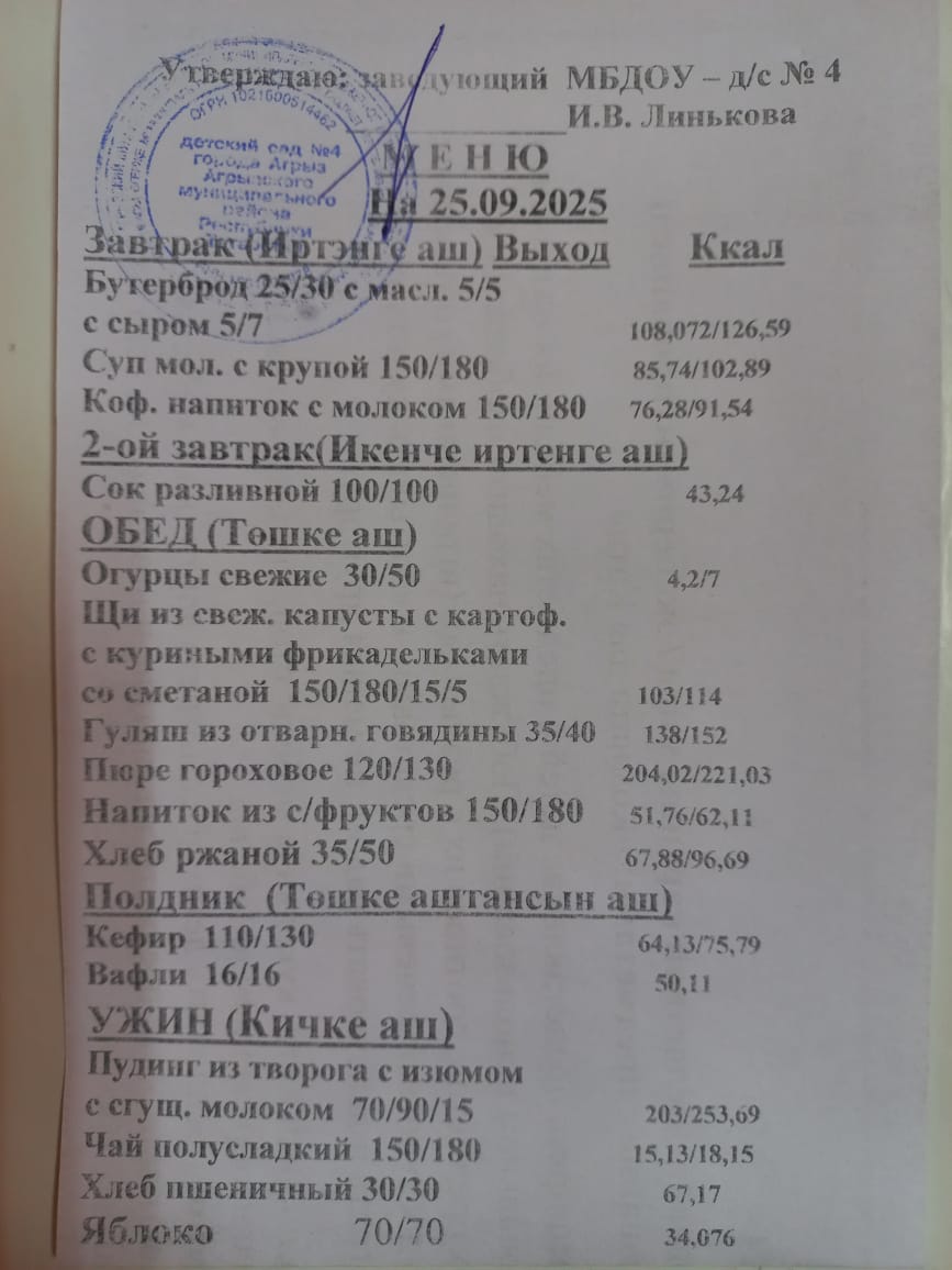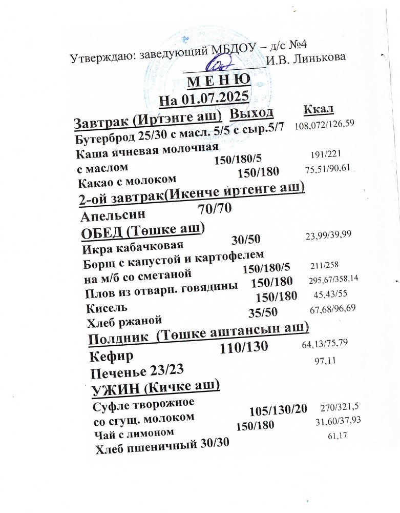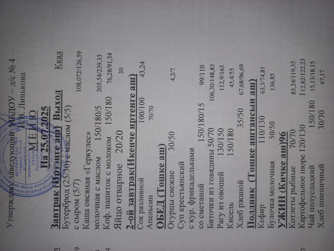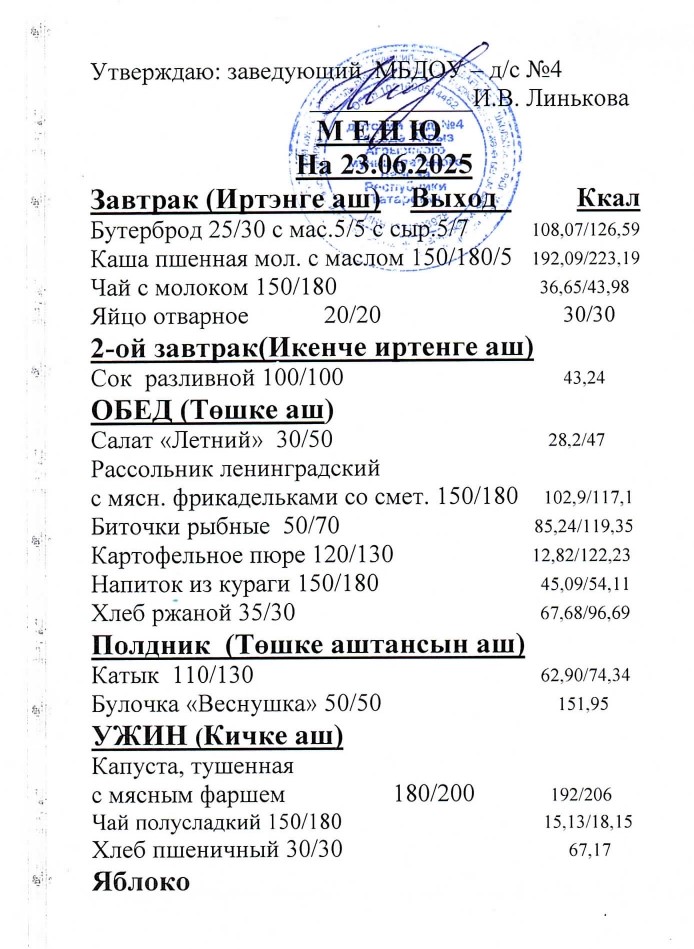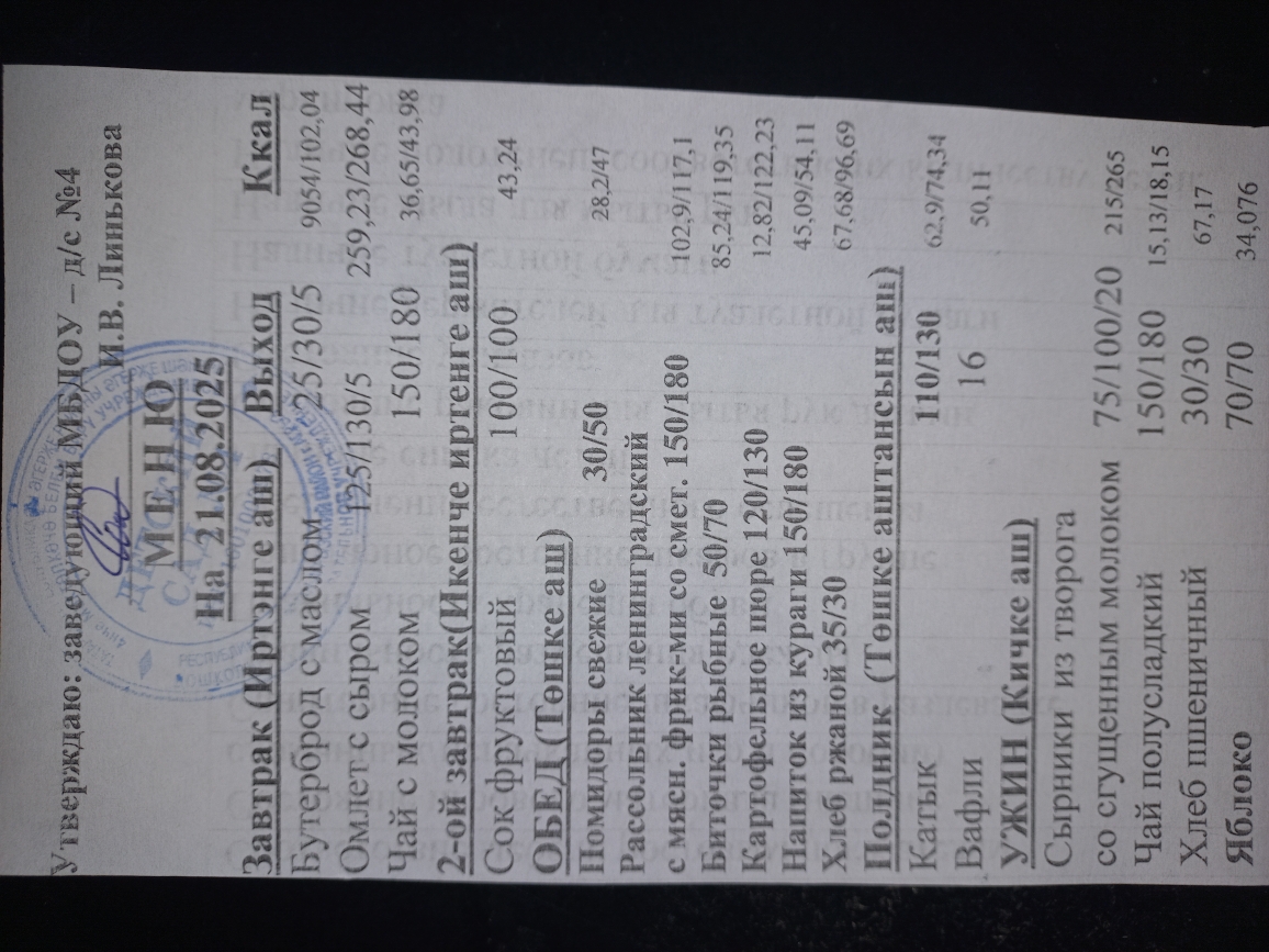 Меню с 12 часовым прибыванием 2024-2025 (лето)