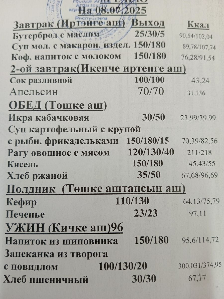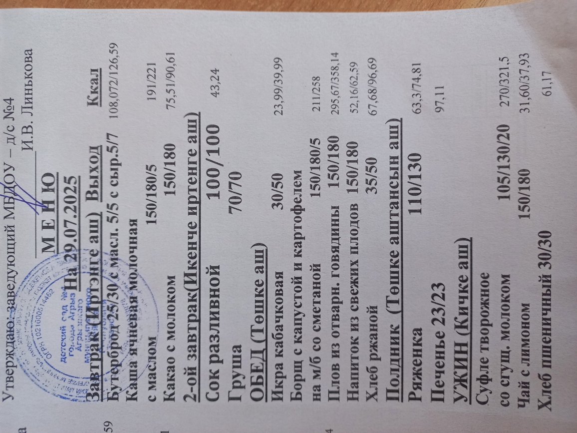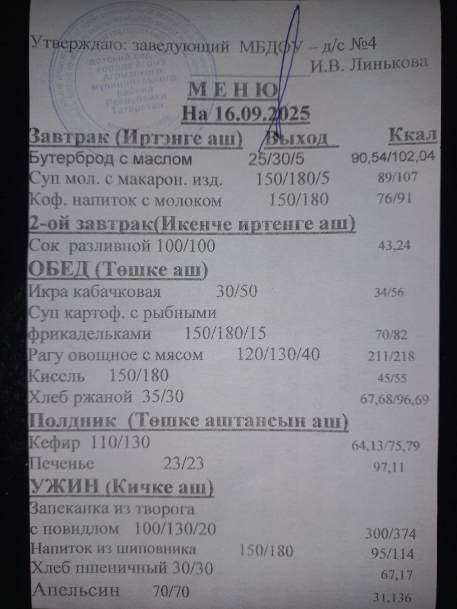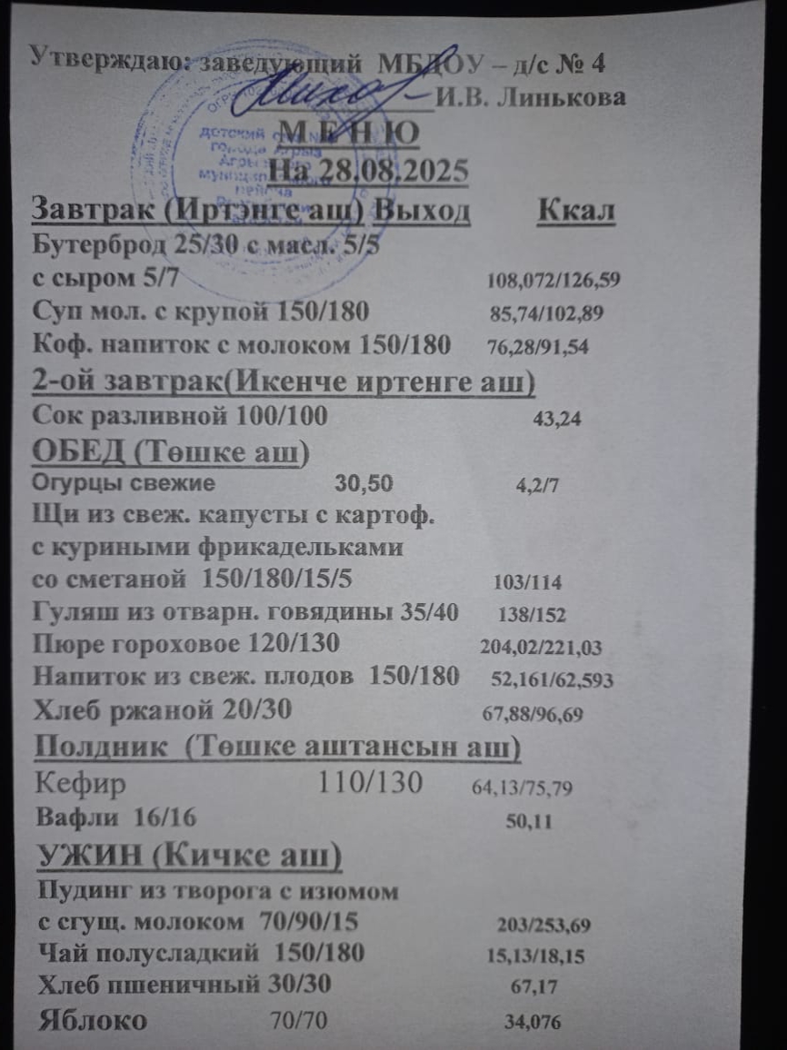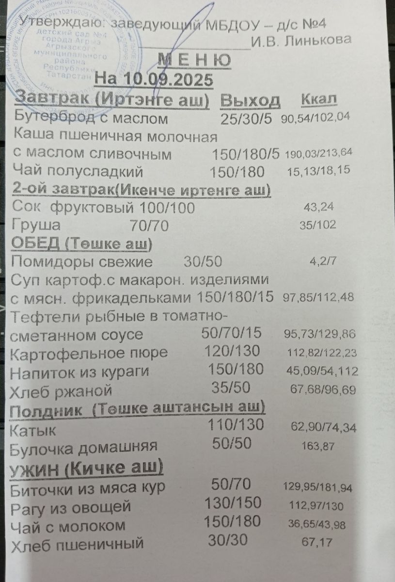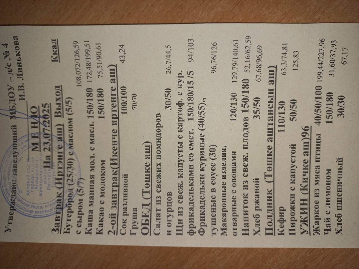 Меню с 12 часовым прибыванием 2024-2025 (лето)