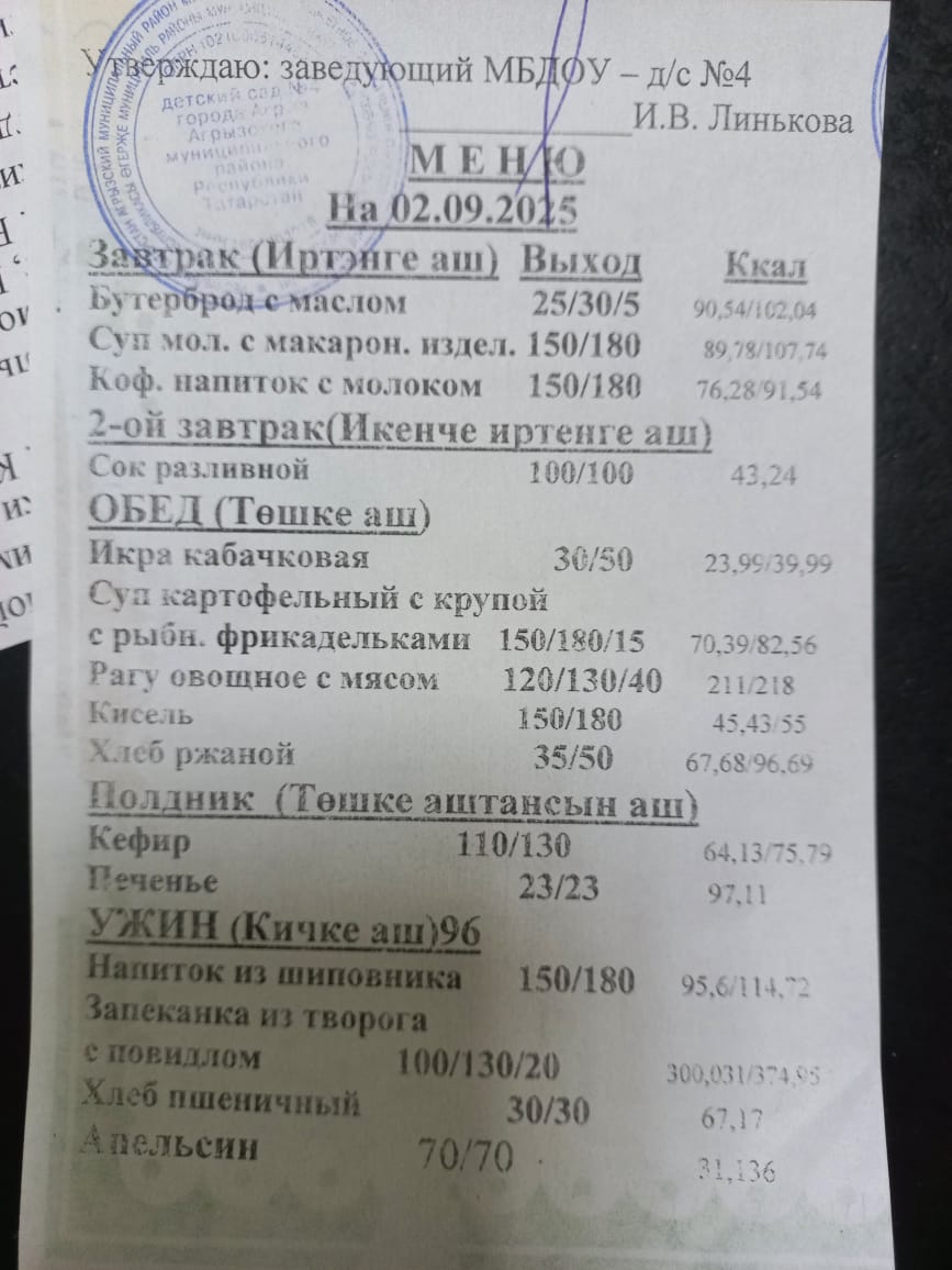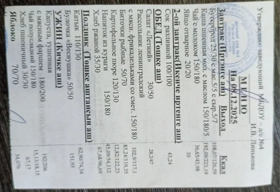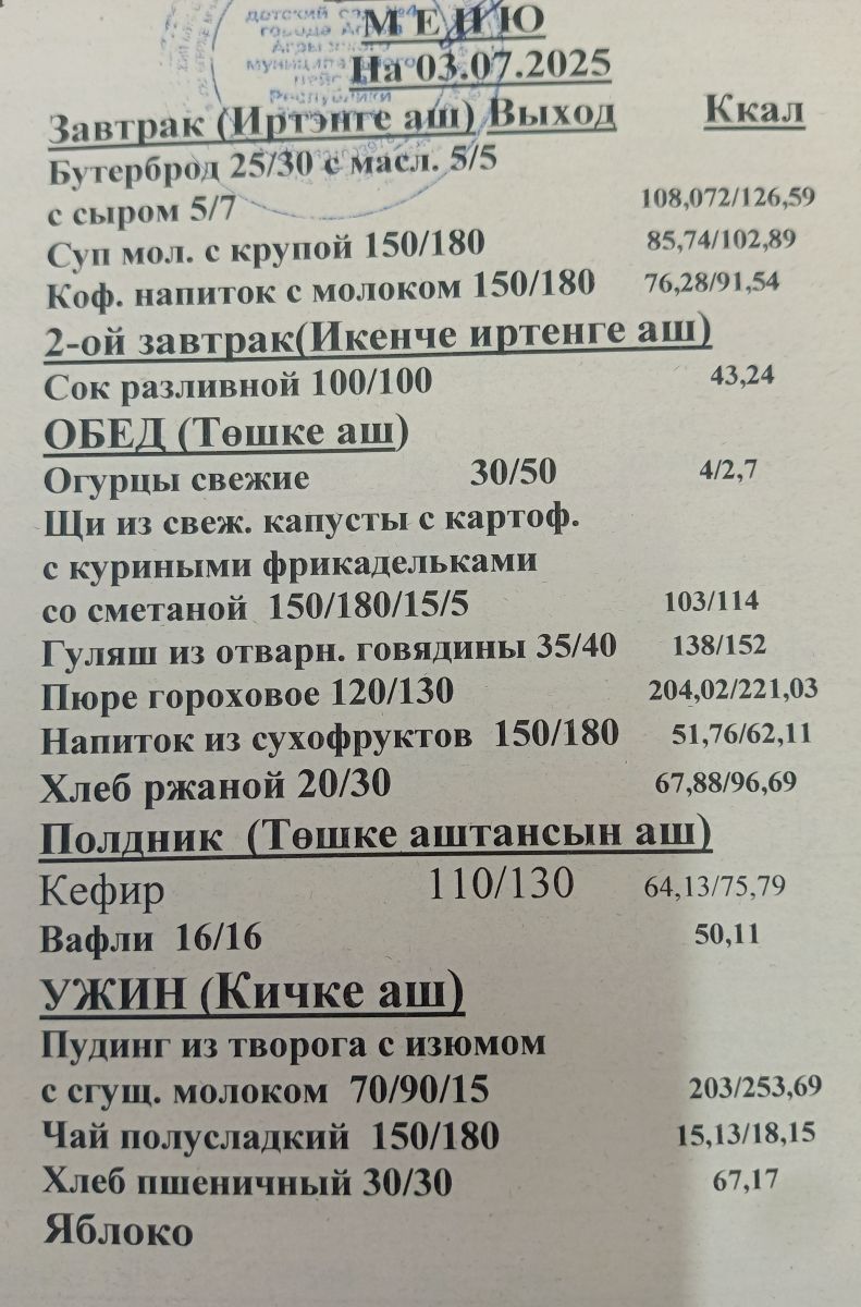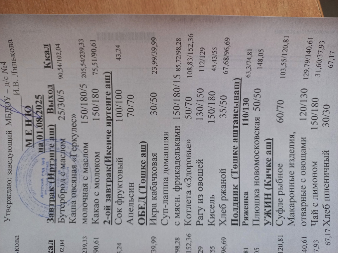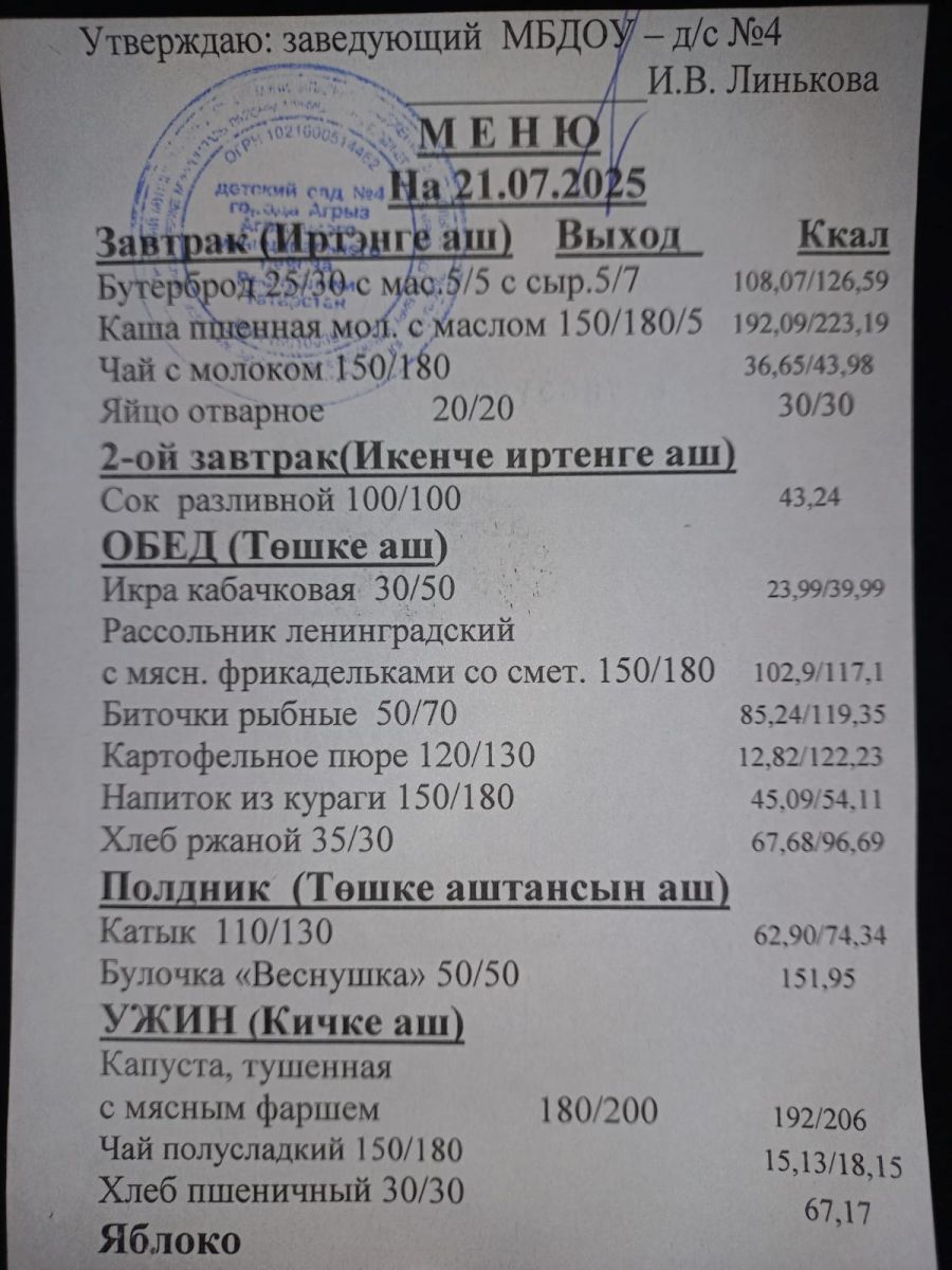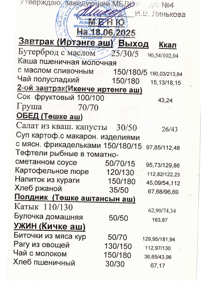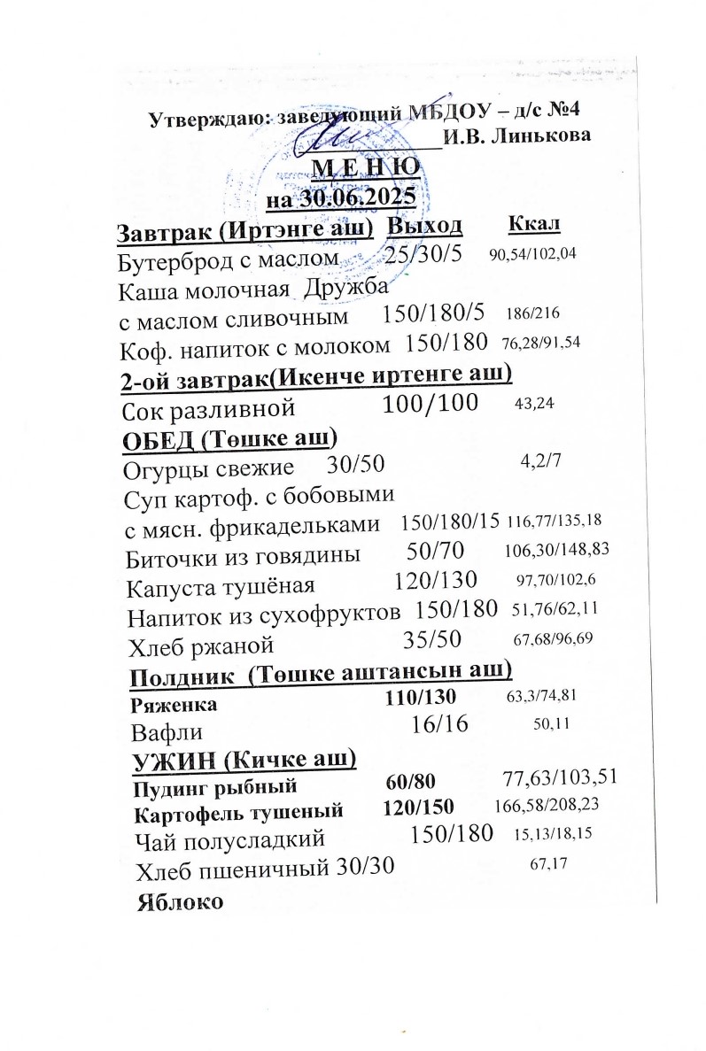 Меню с 12 часовым прибыванием 2024-2025 (лето)