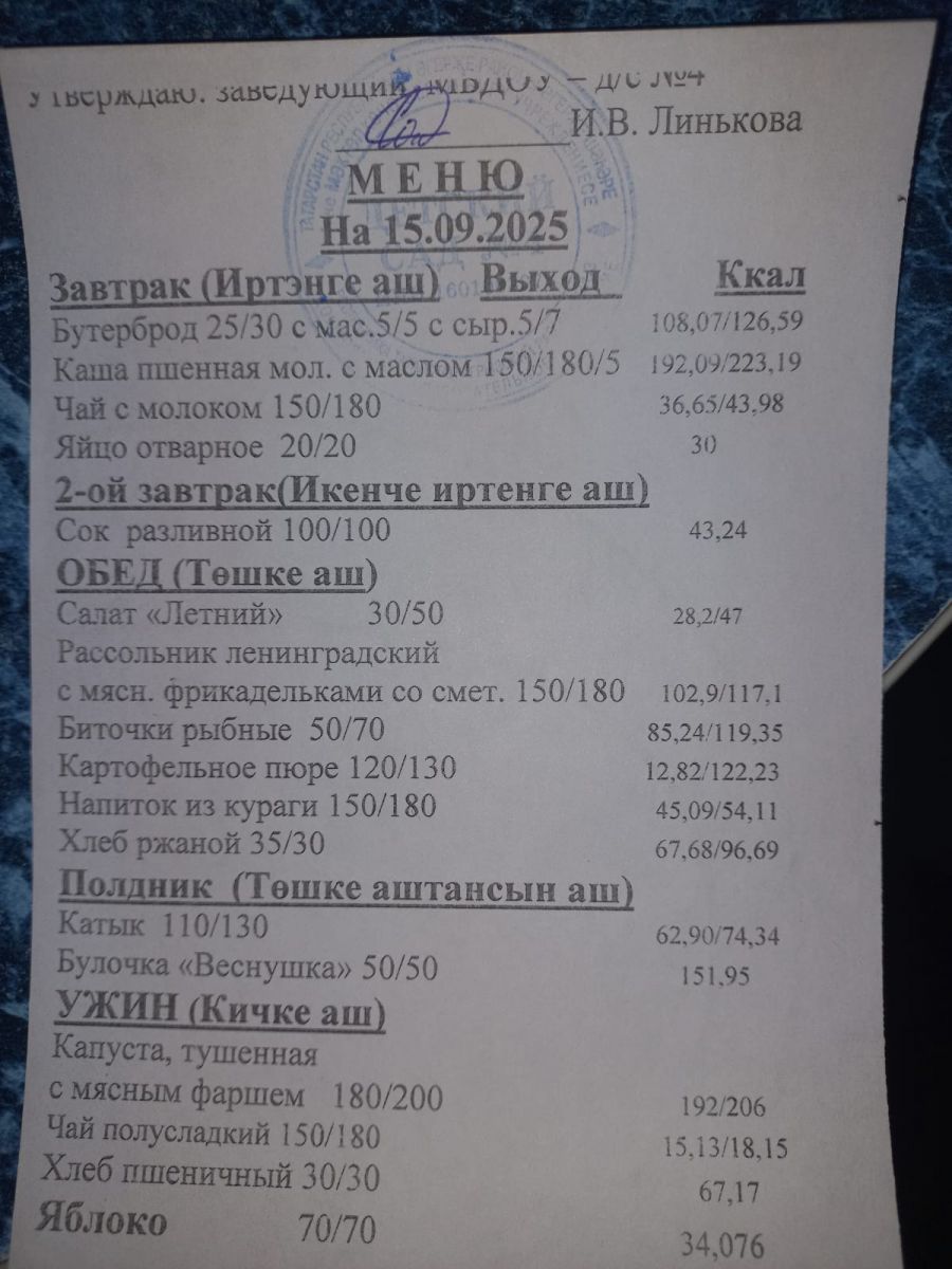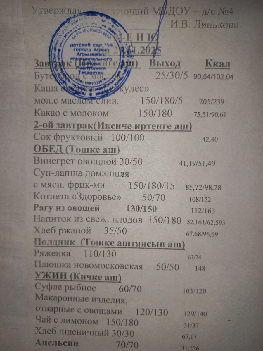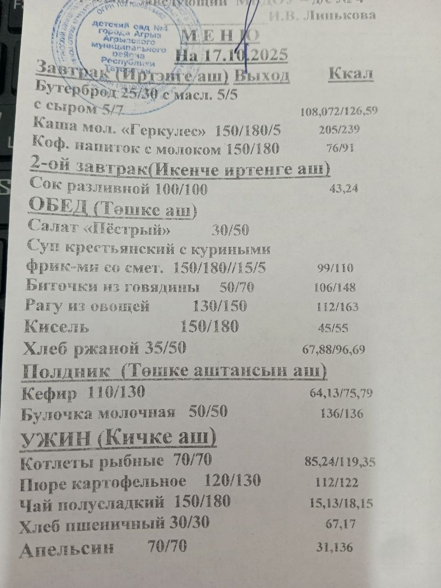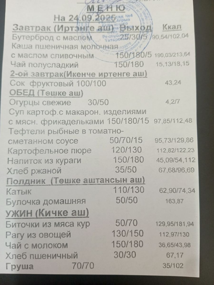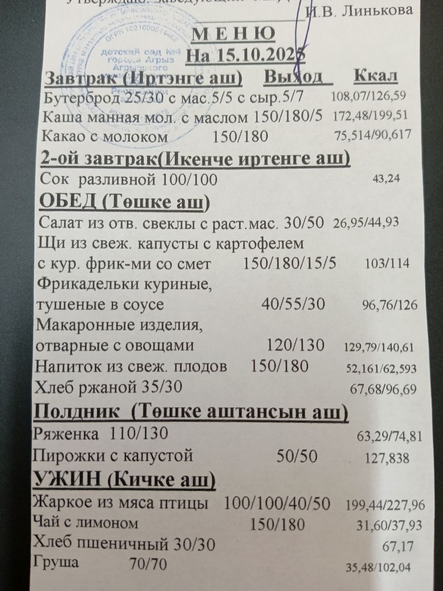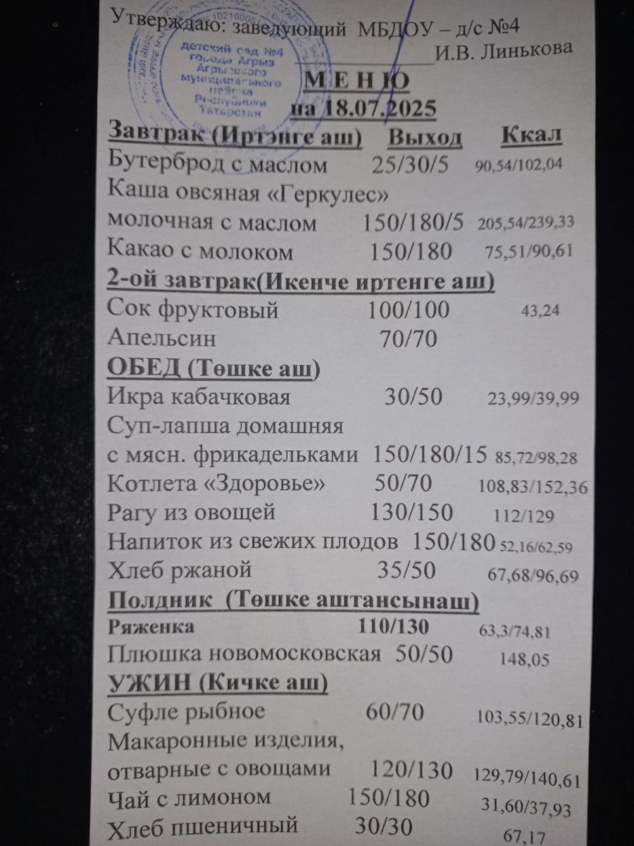 Меню с 12 часовым прибыванием 2024-2025 (лето)
