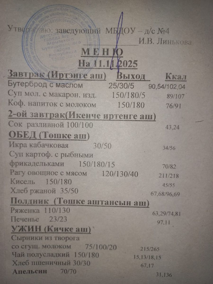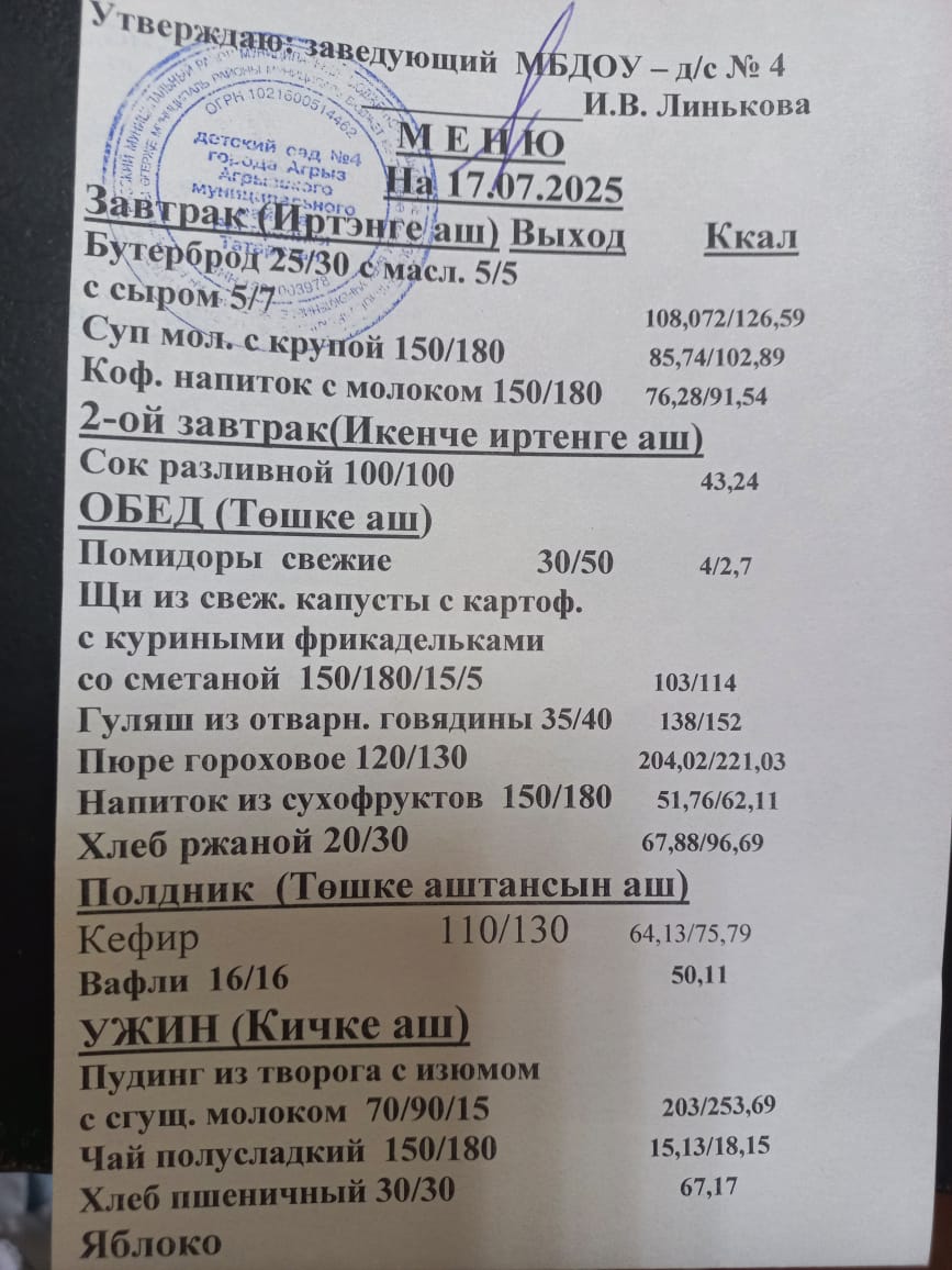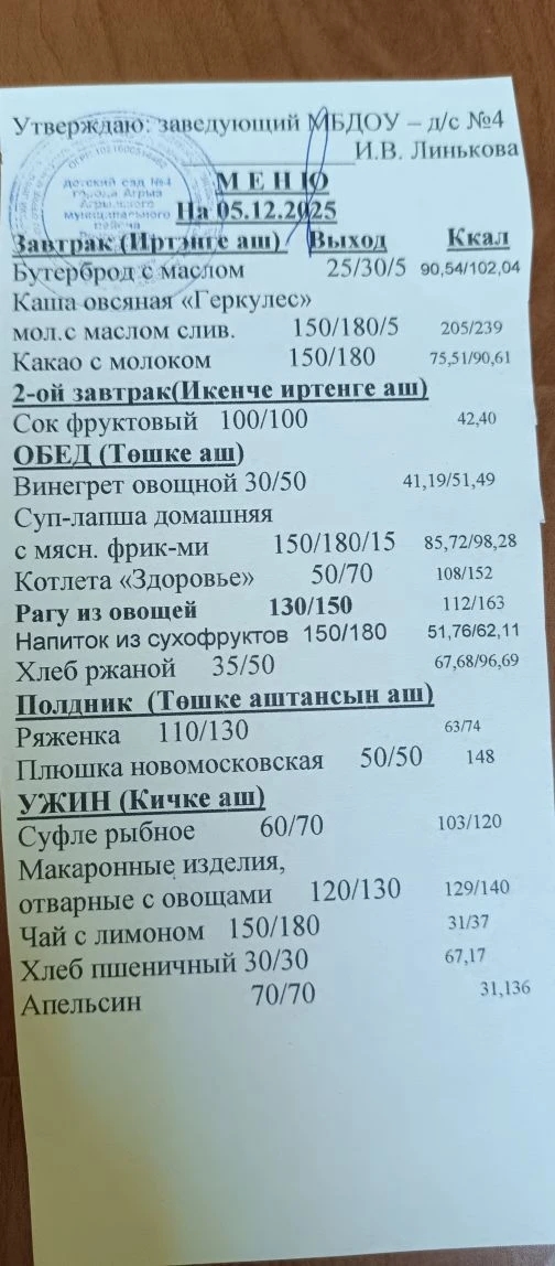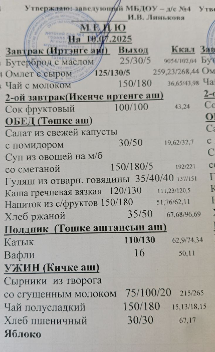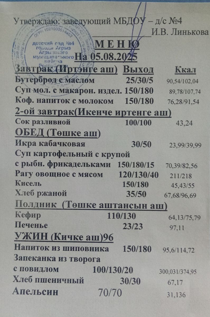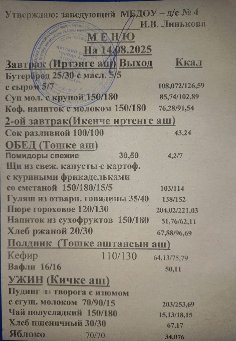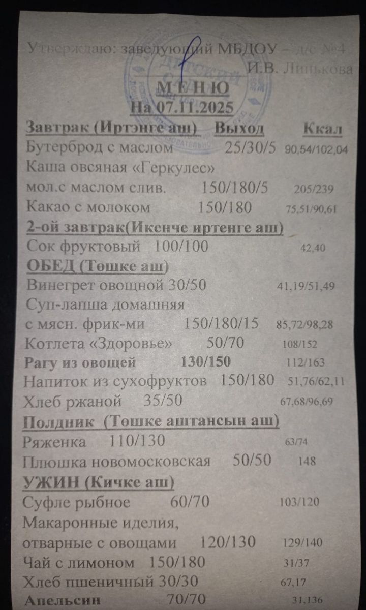 Меню с 12 часовым прибыванием 2024-2025 (лето)