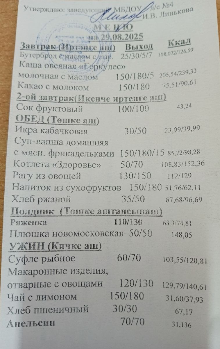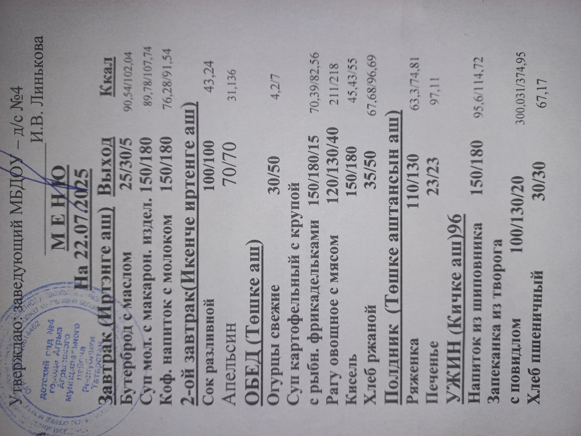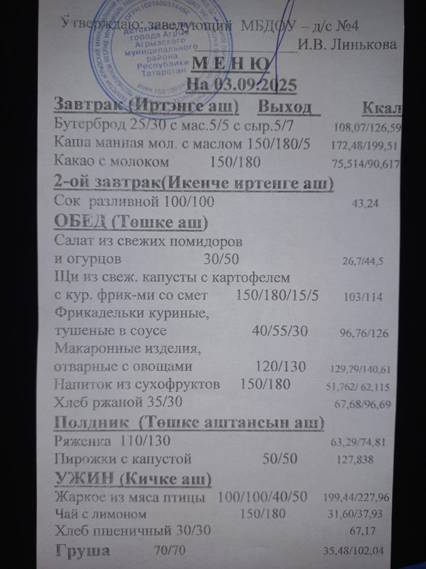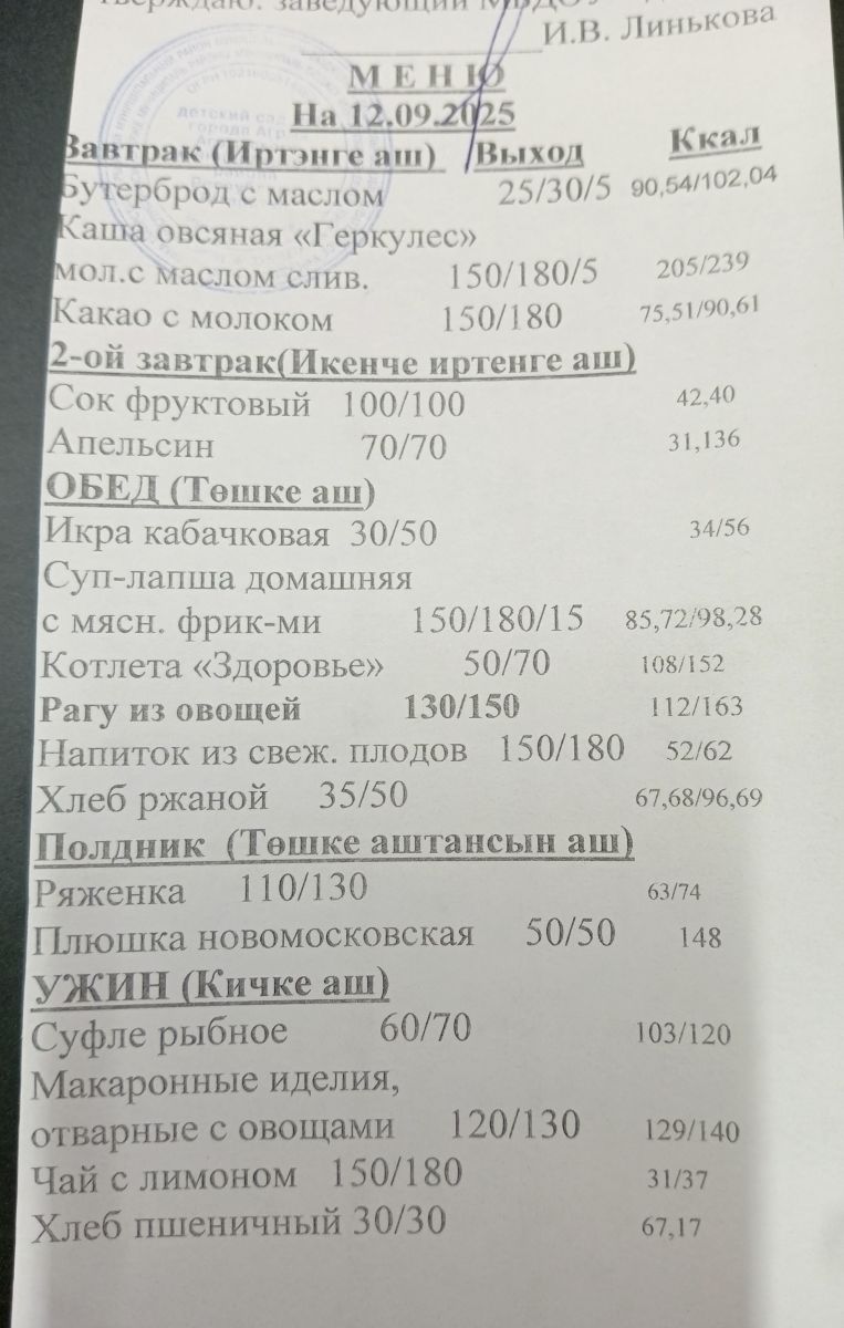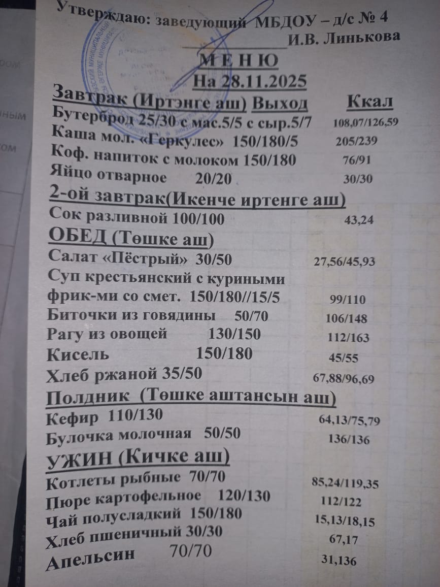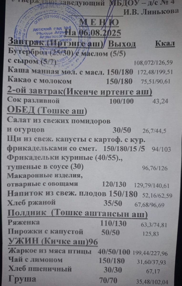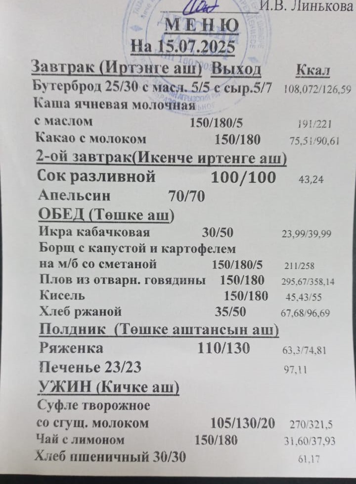Меню с 12 часовым прибыванием 2024-2025 (лето)