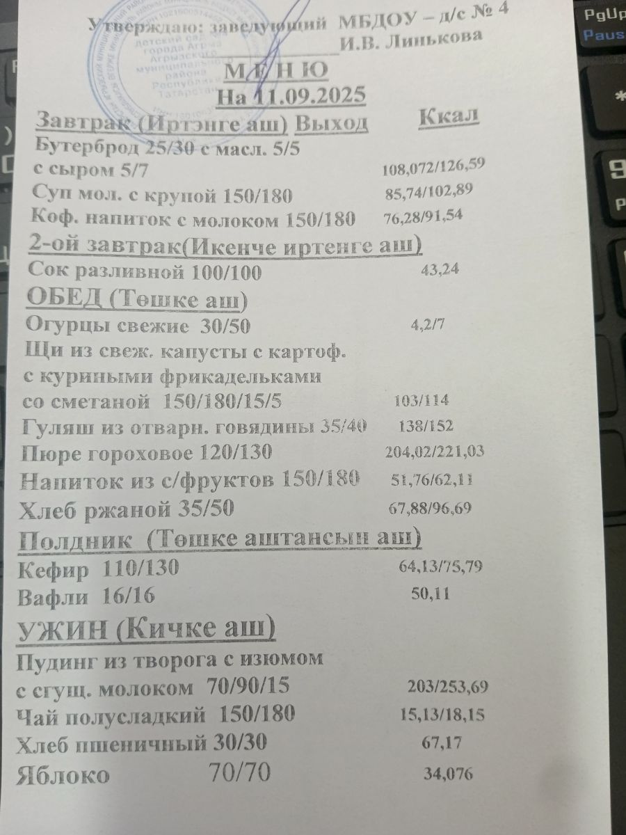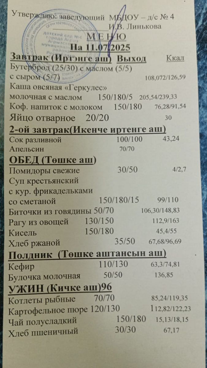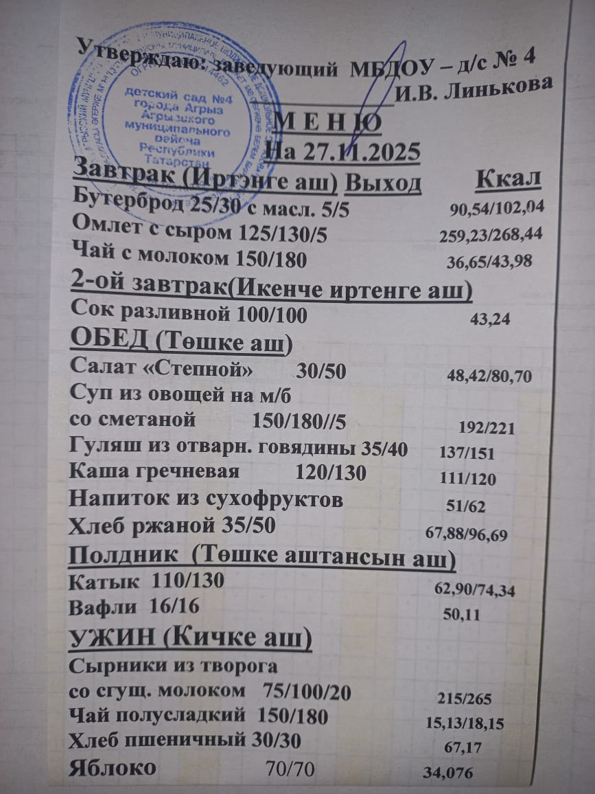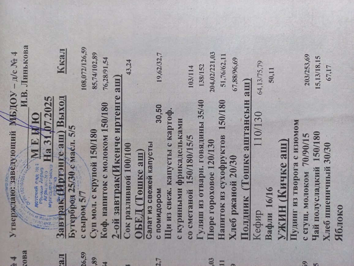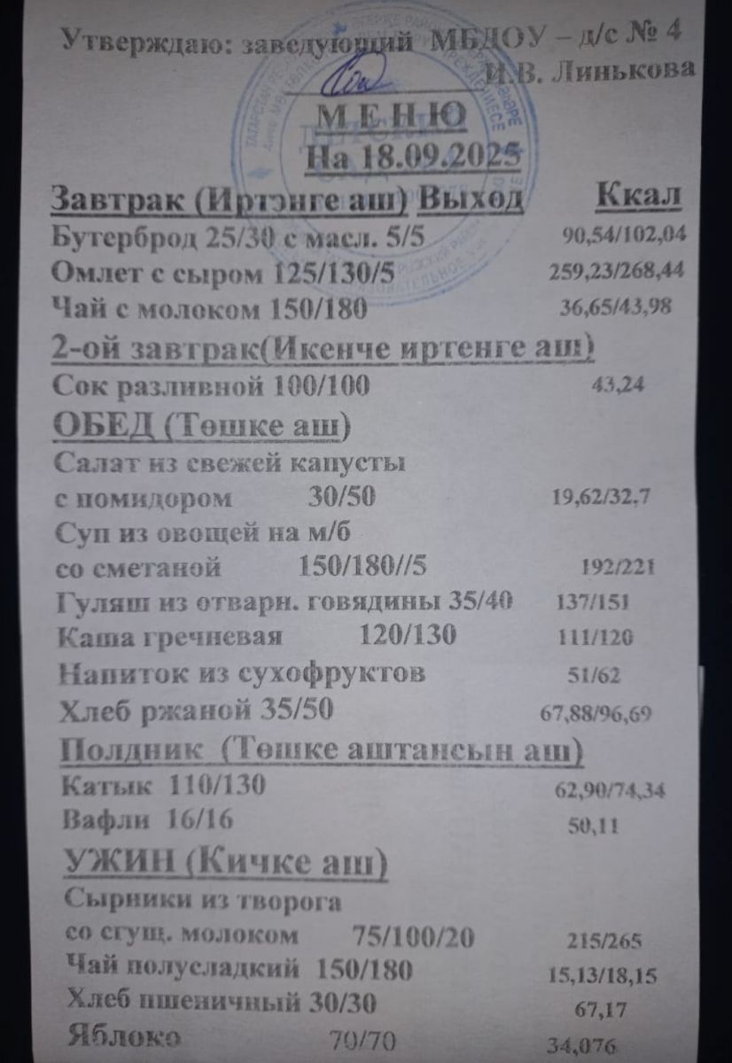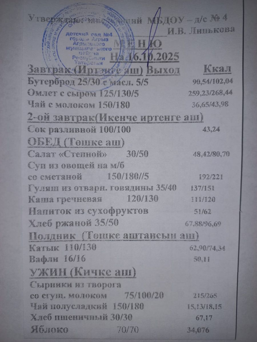 Меню с 12 часовым прибыванием 2024-2025 (лето)