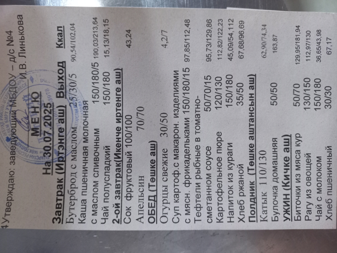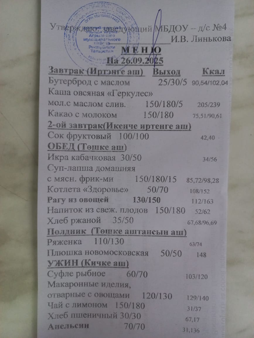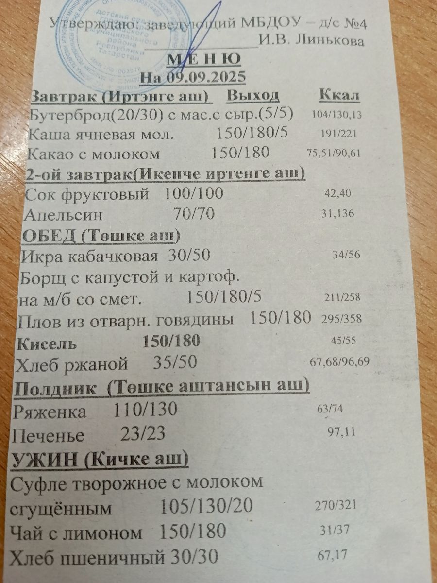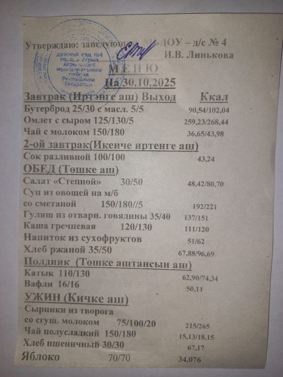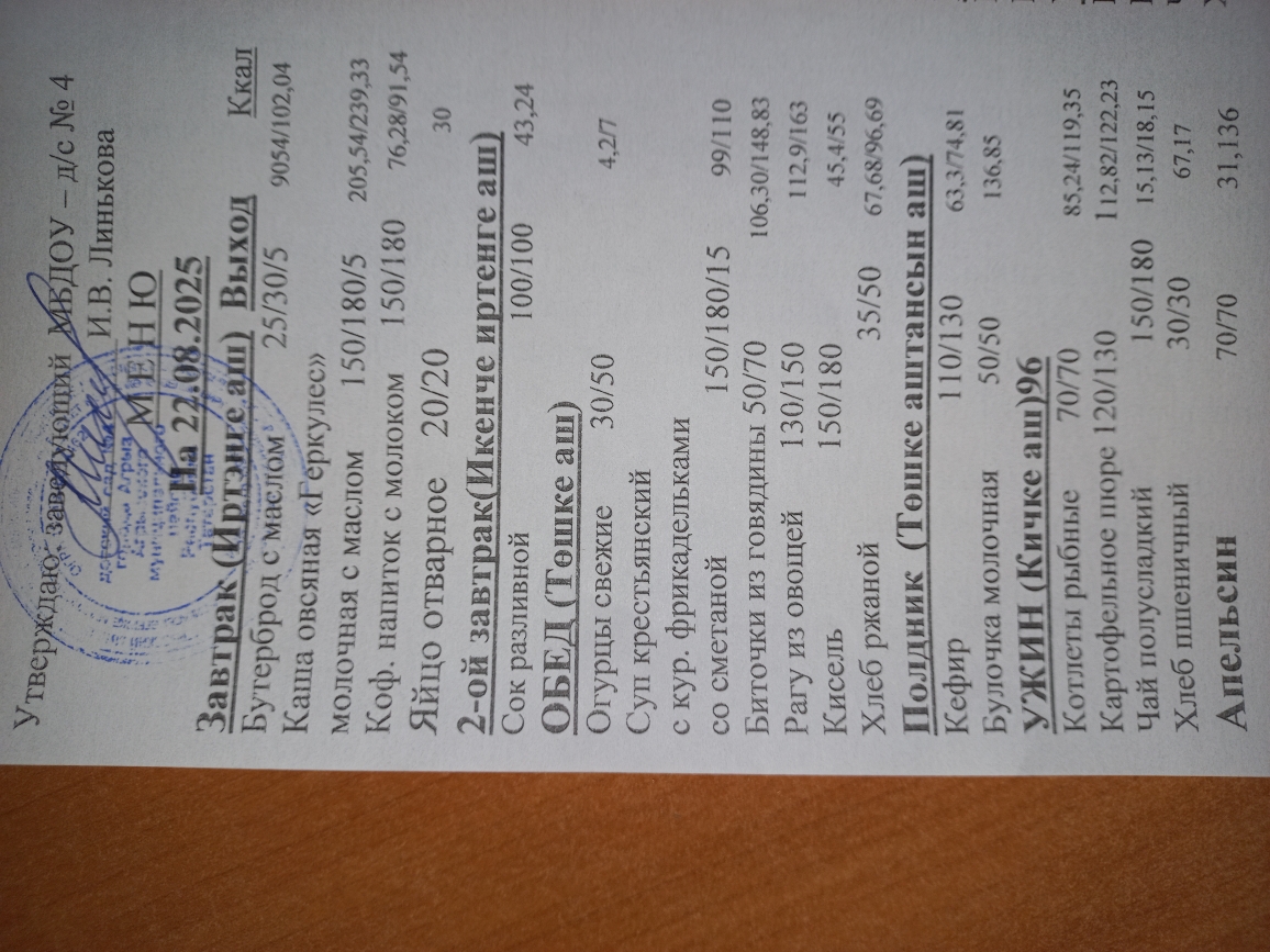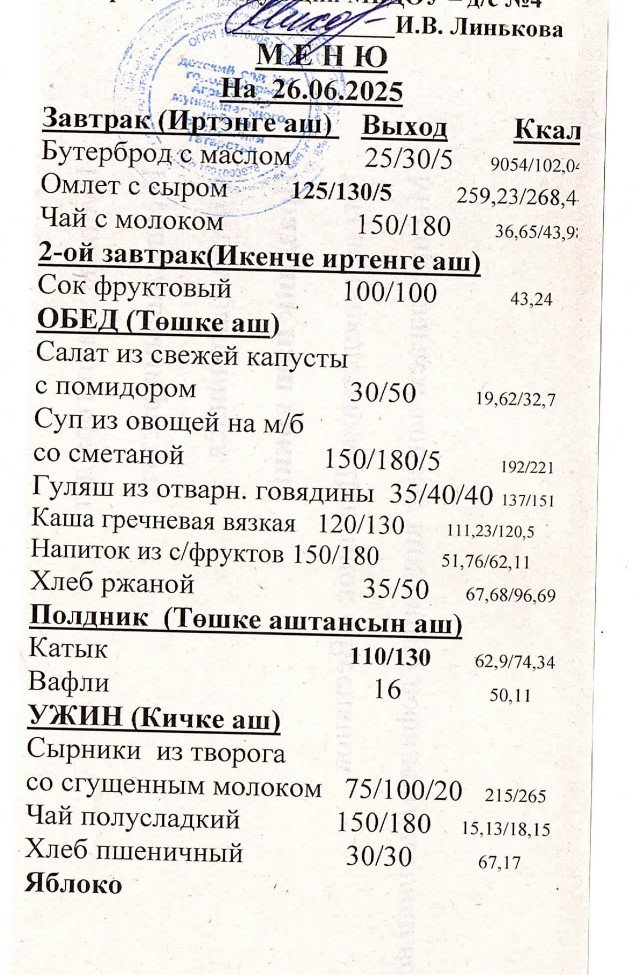 Меню с 12 часовым прибыванием 2024-2025 (лето)