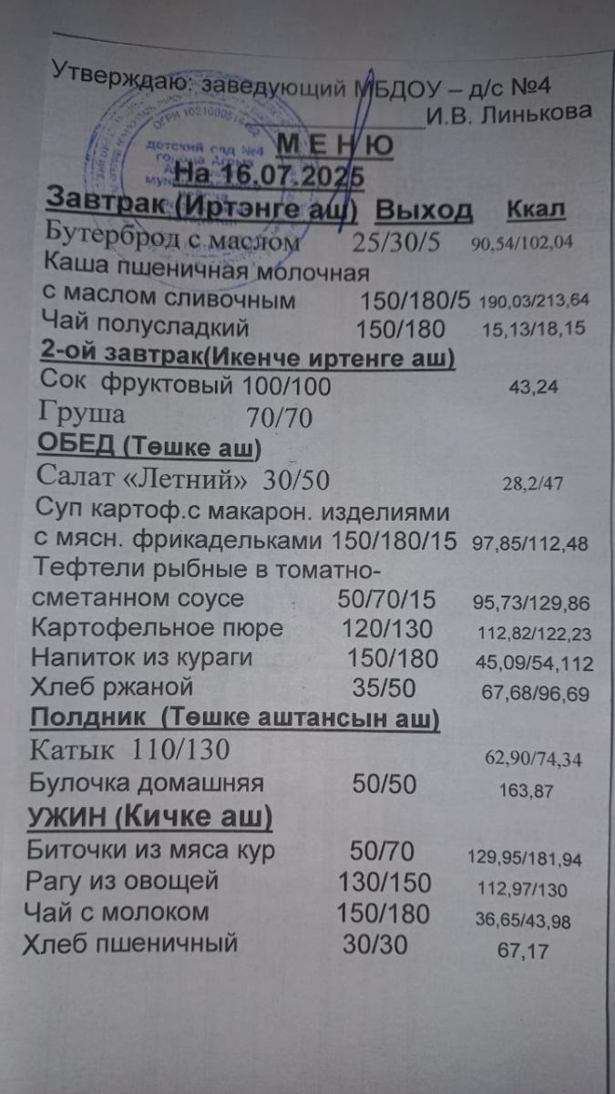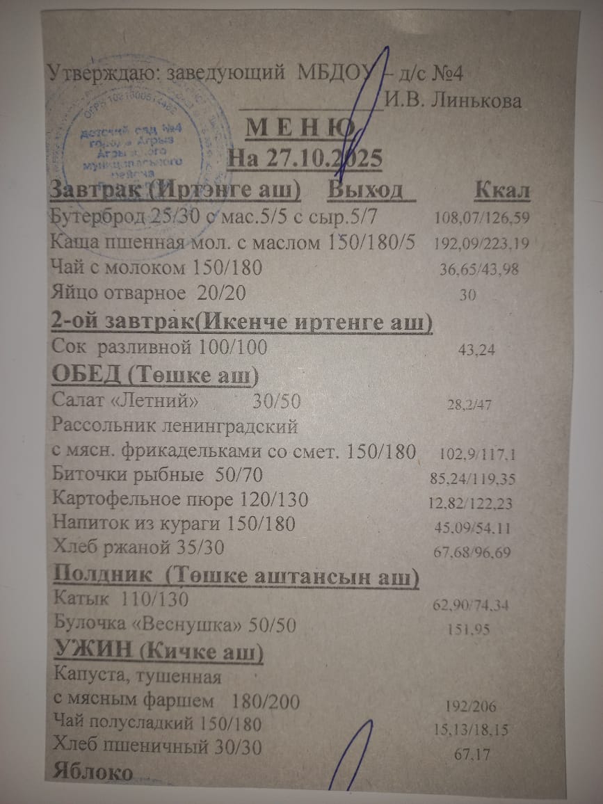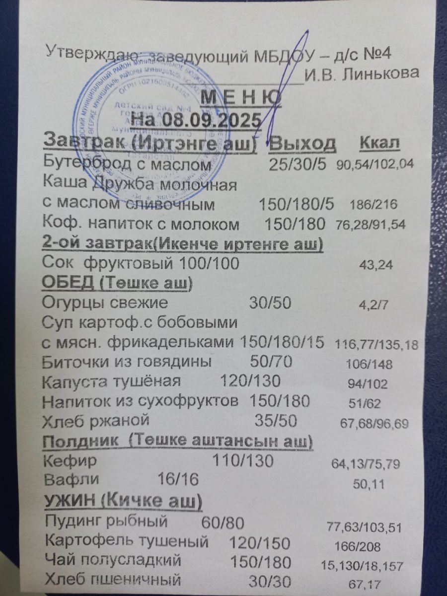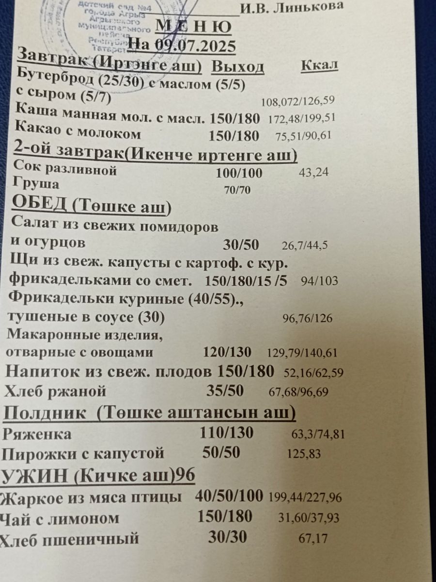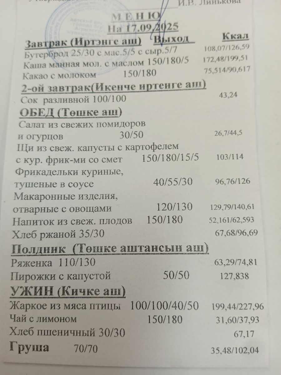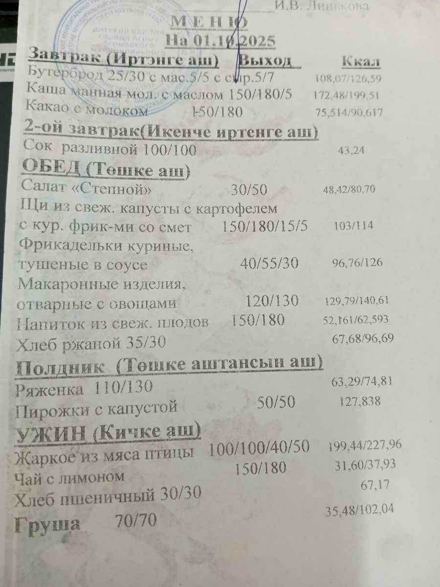 Меню с 12 часовым прибыванием 2024-2025 (лето)