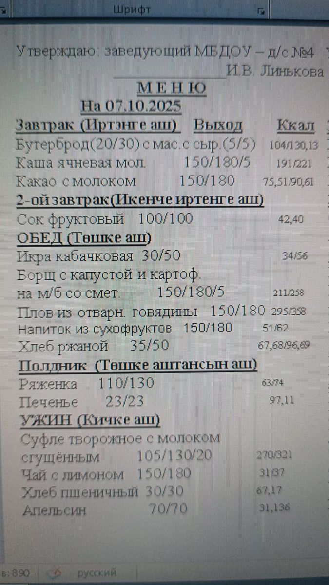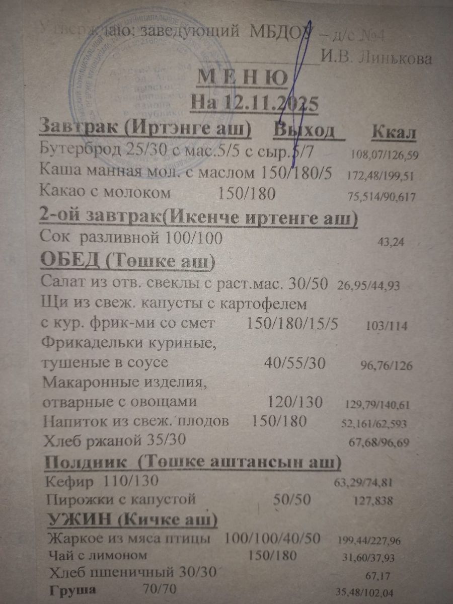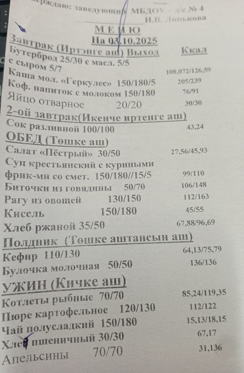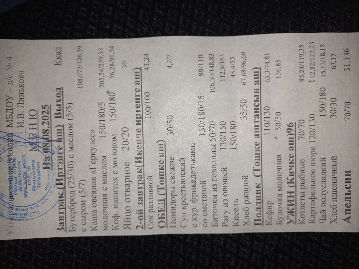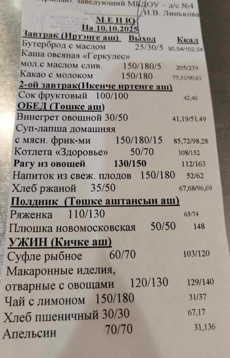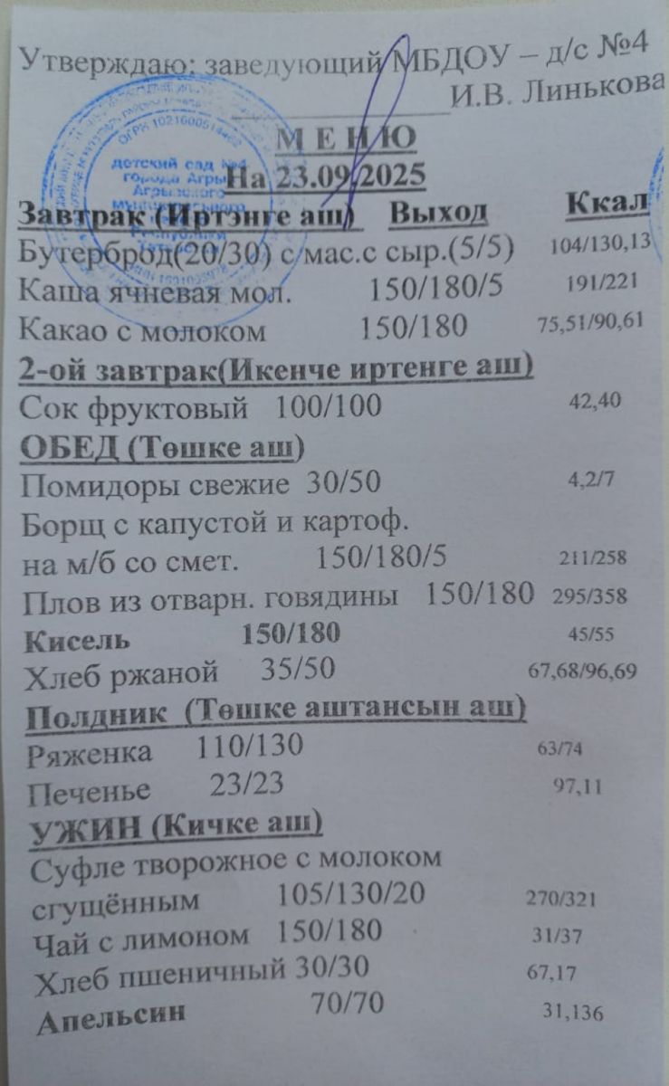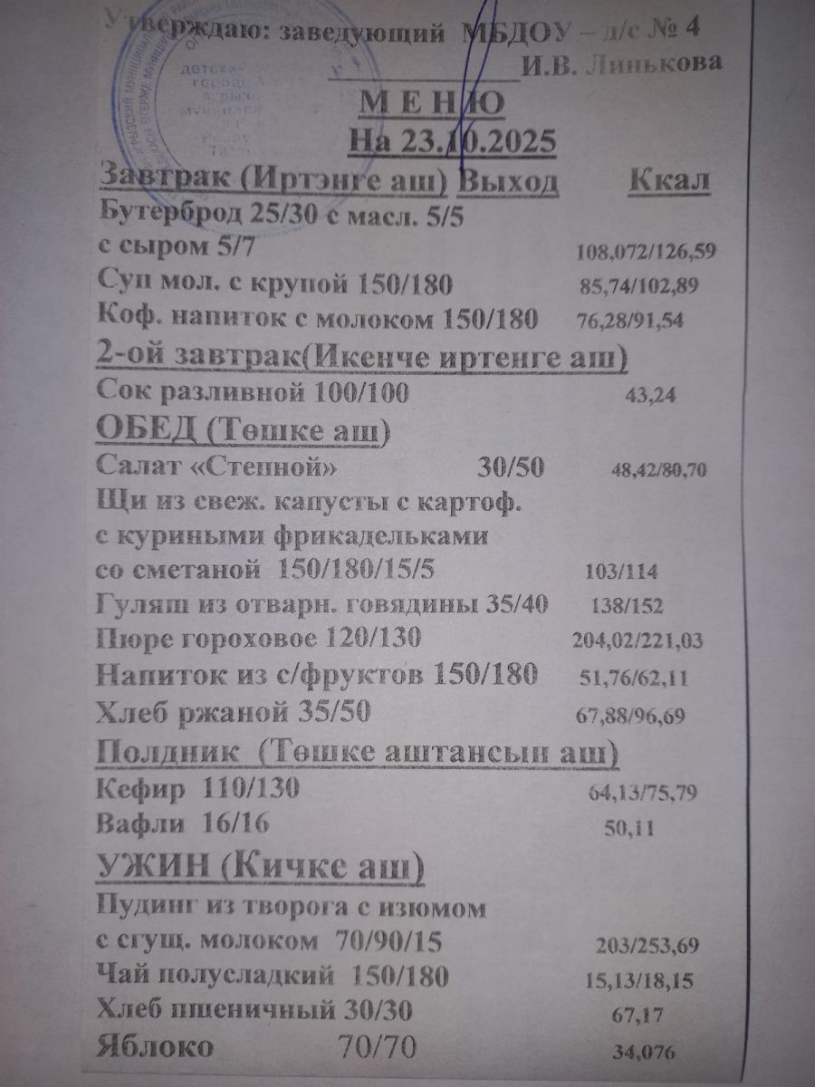 Меню с 12 часовым прибыванием 2024-2025 (лето)
