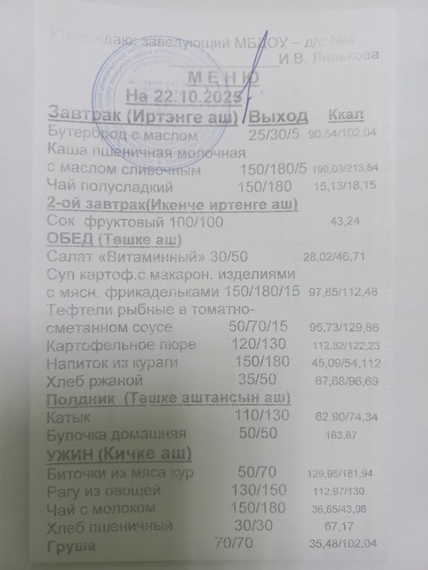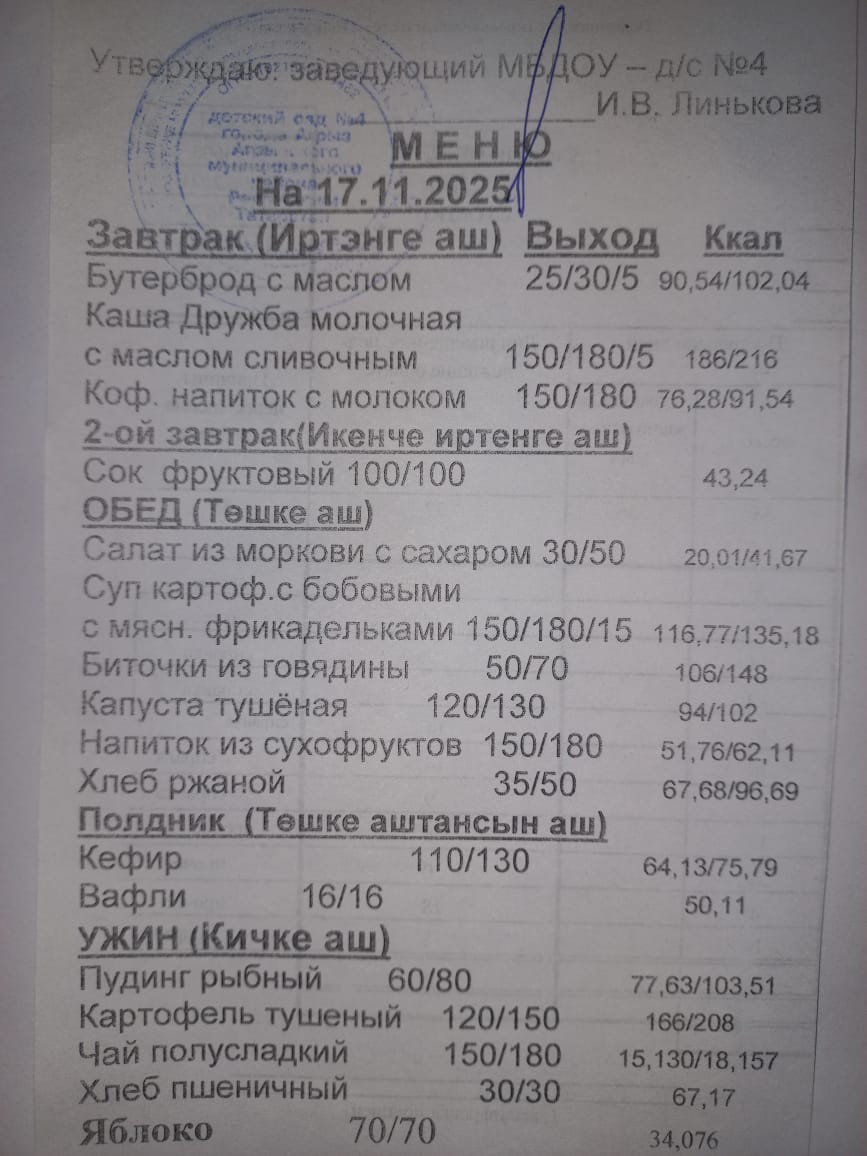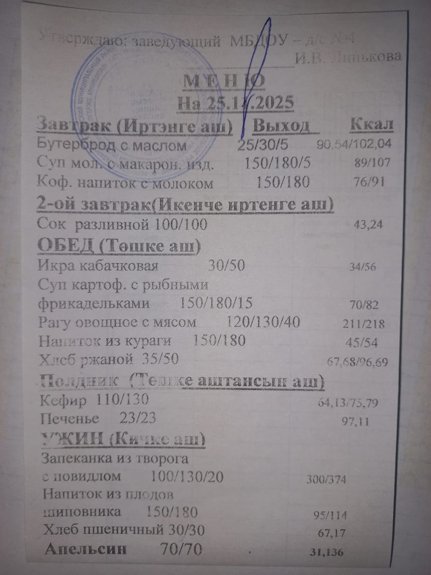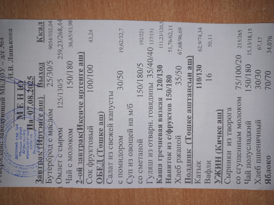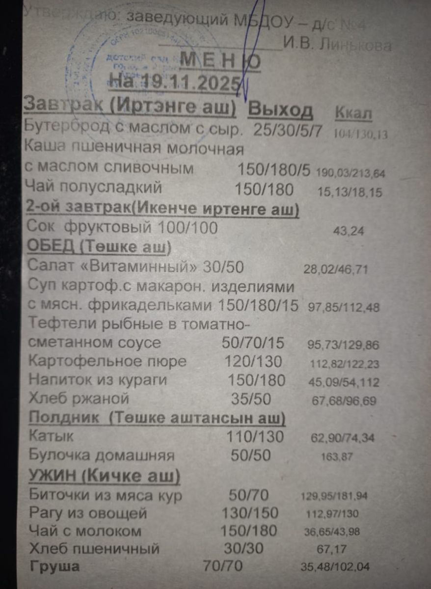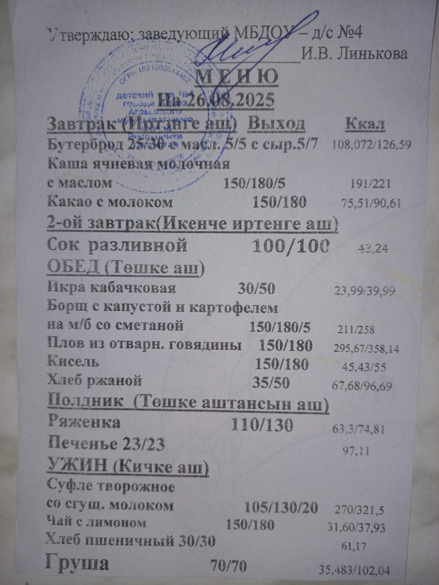 Меню с 12 часовым прибыванием 2024-2025 (лето)