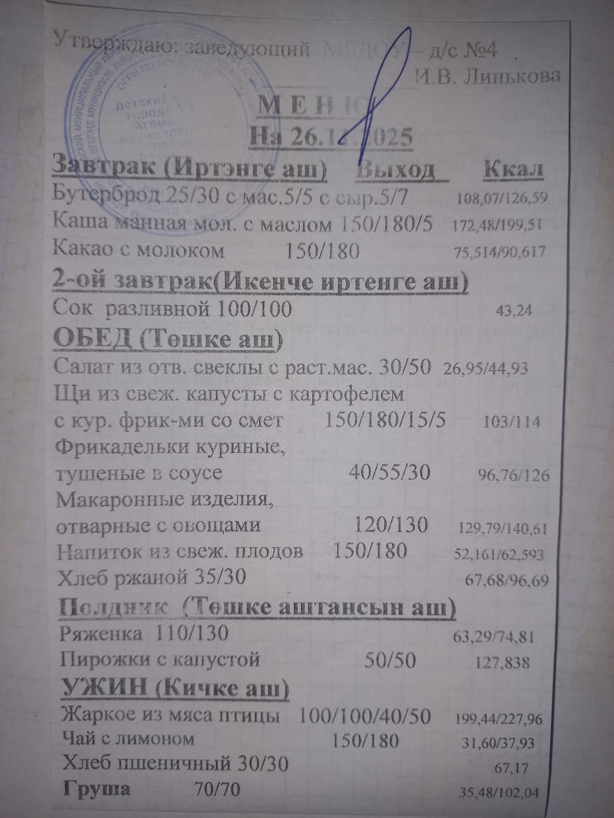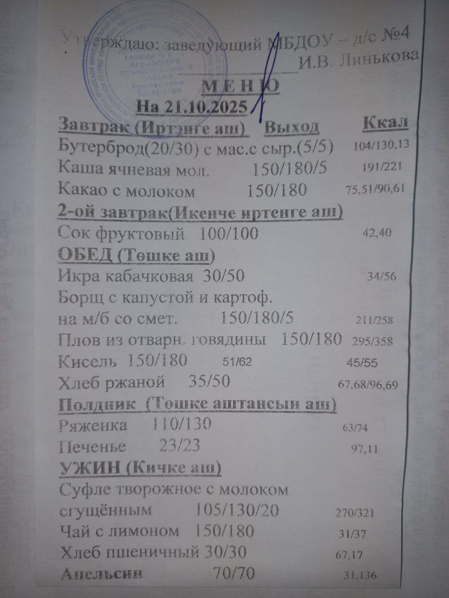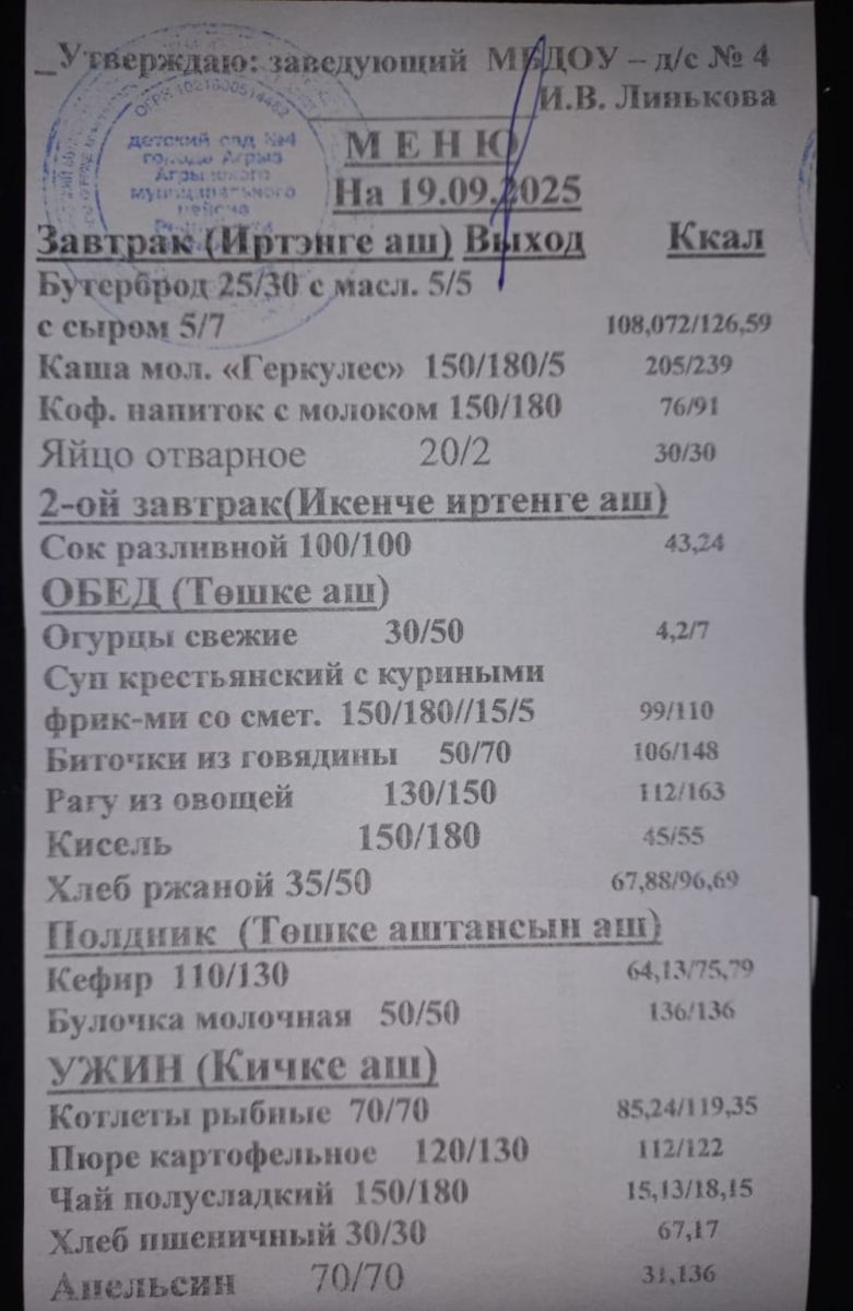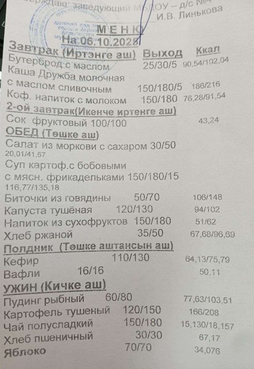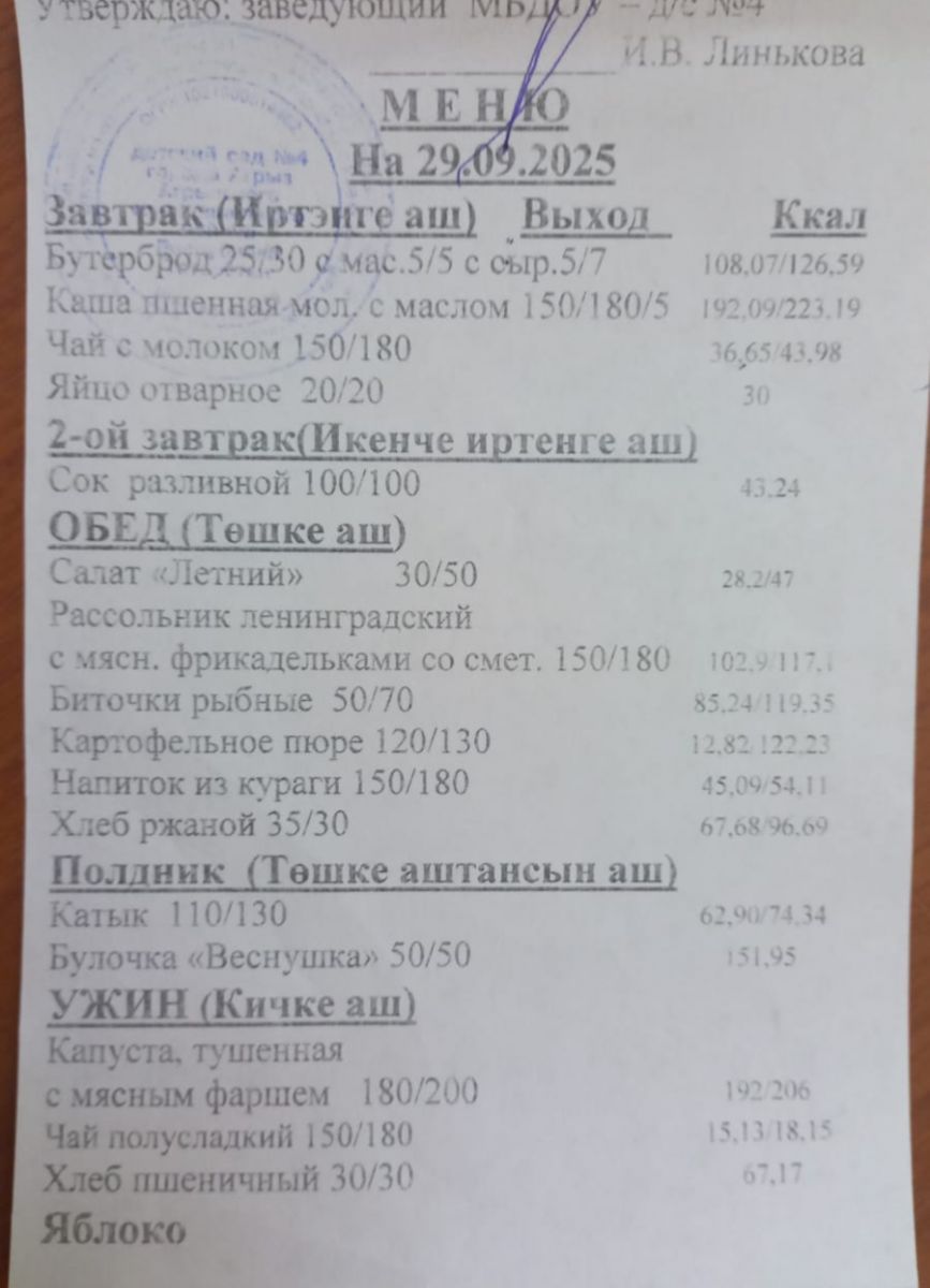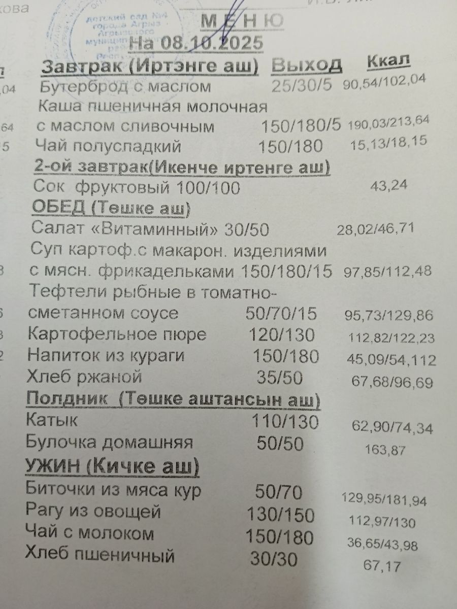 Меню с 12 часовым прибыванием 2024-2025 (лето)