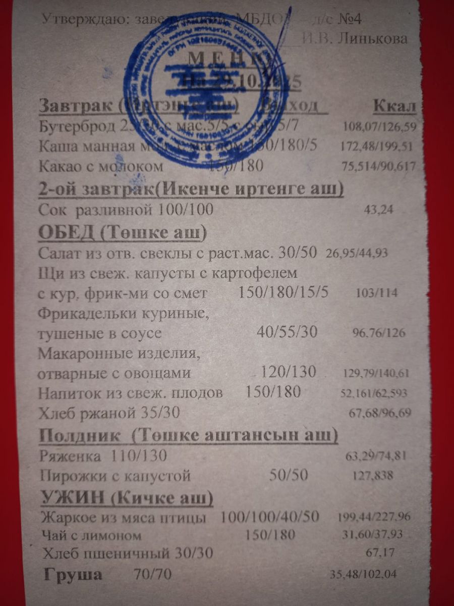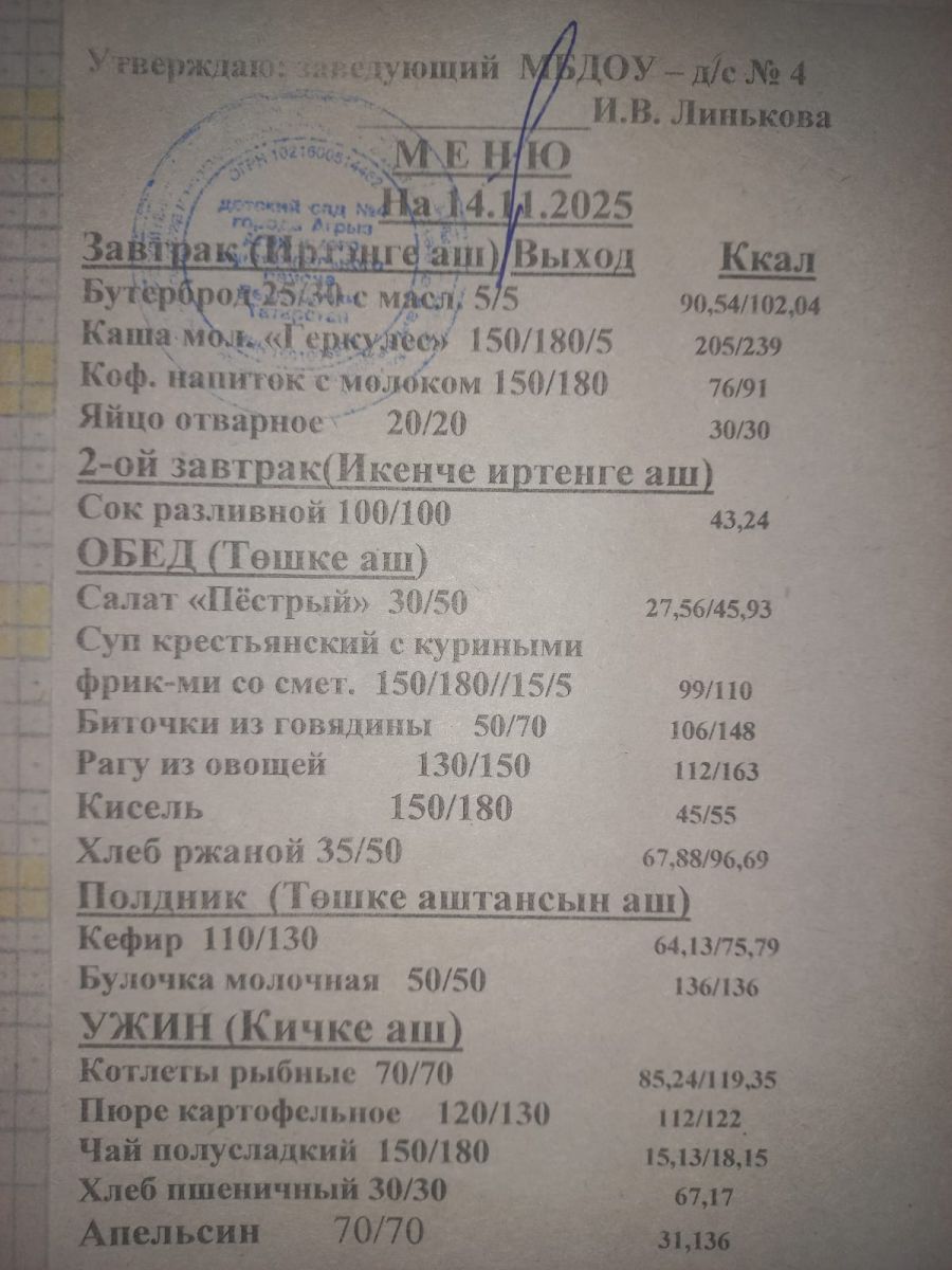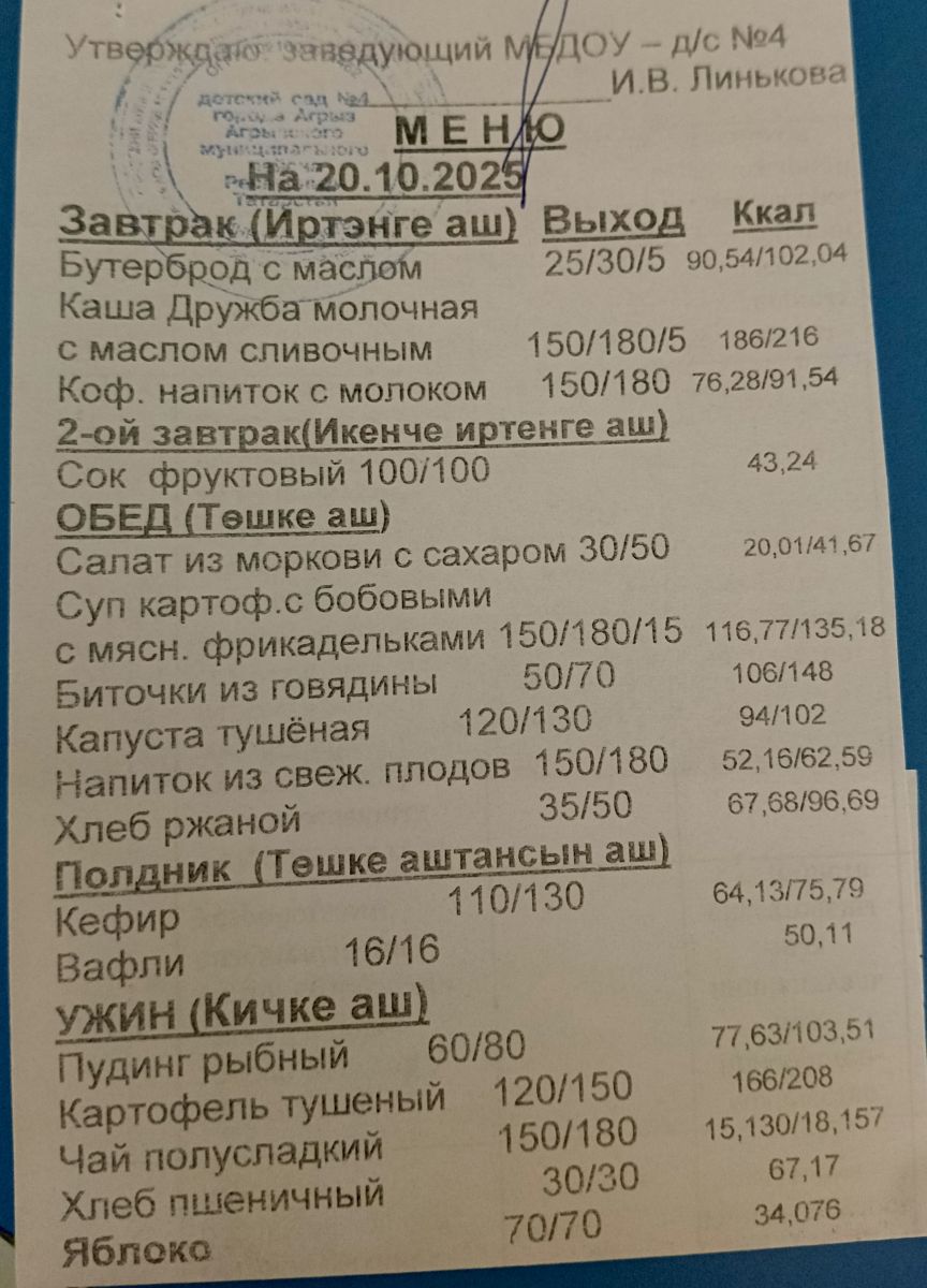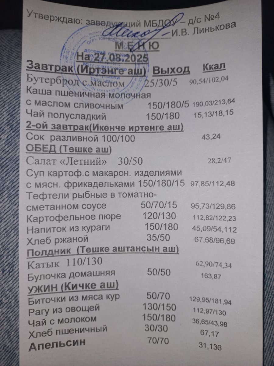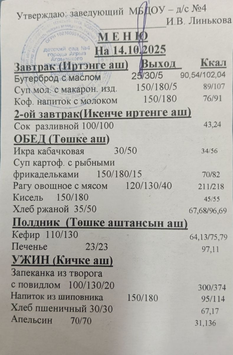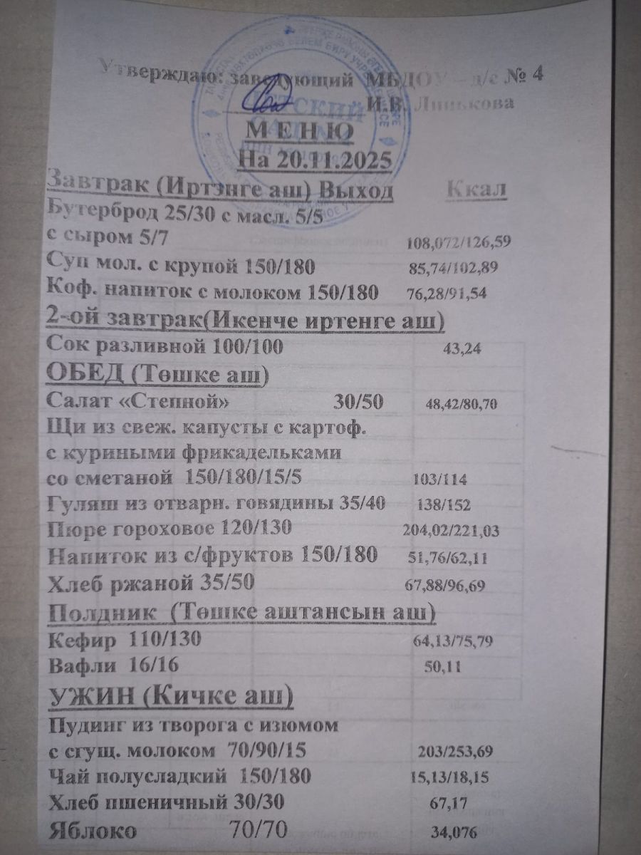 Меню с 12 часовым прибыванием 2024-2025 (лето)