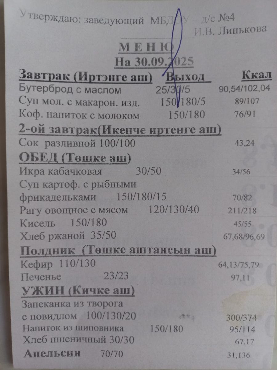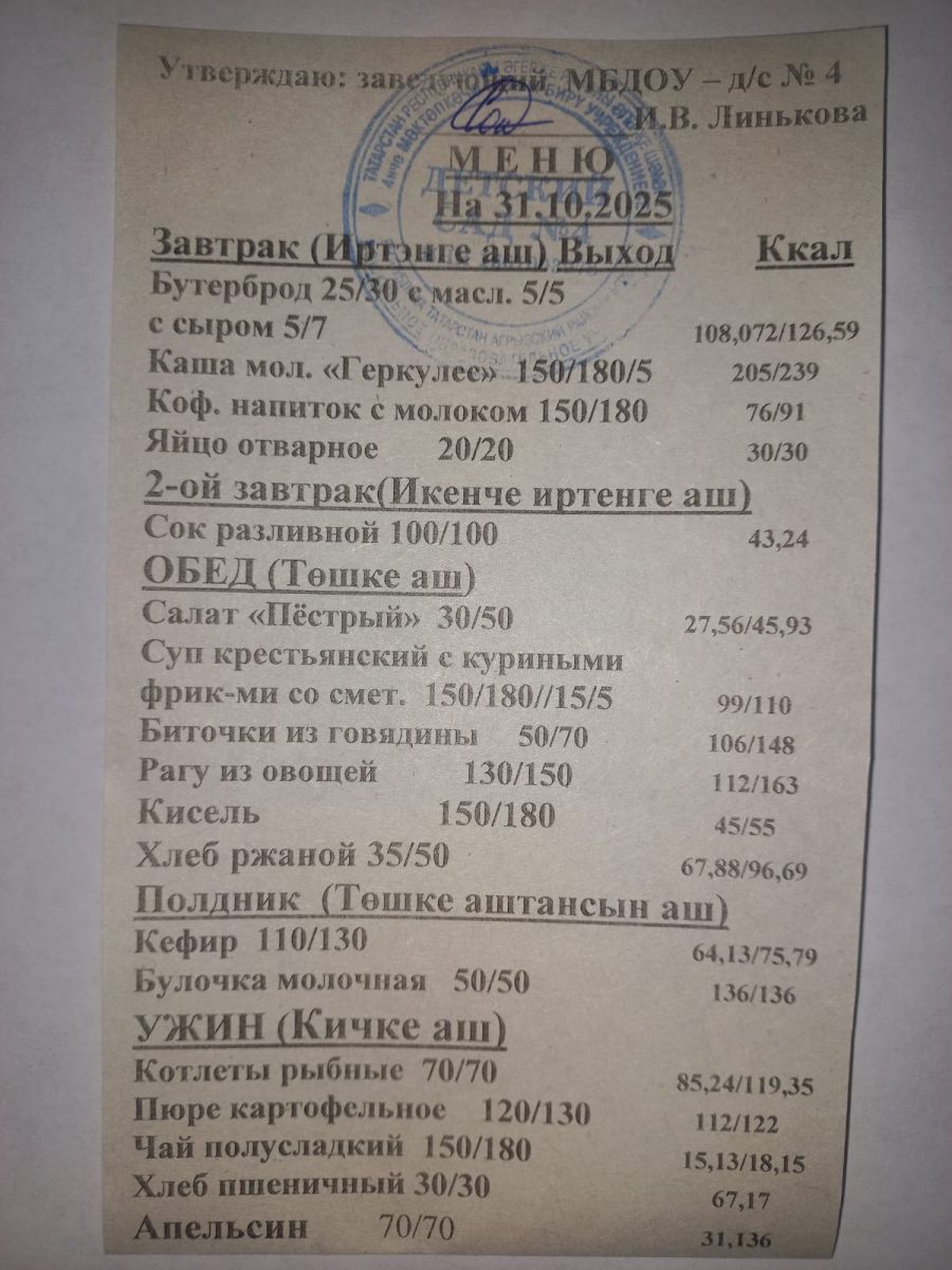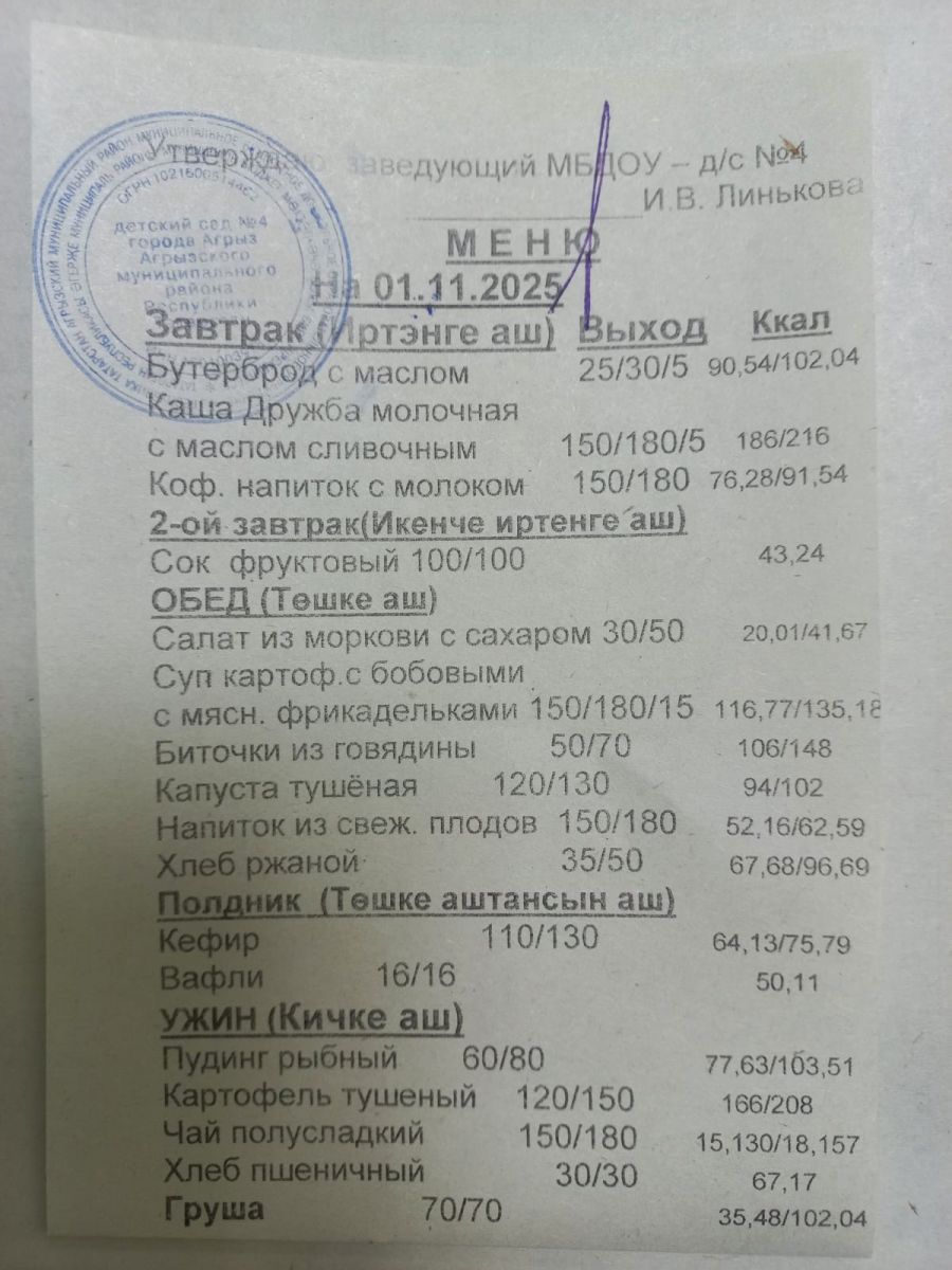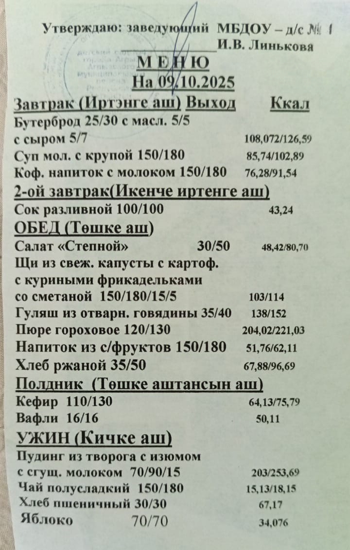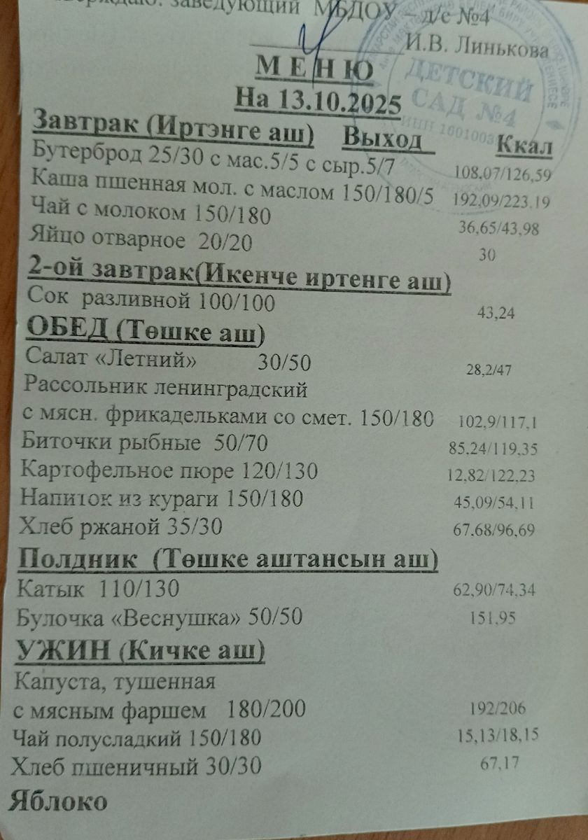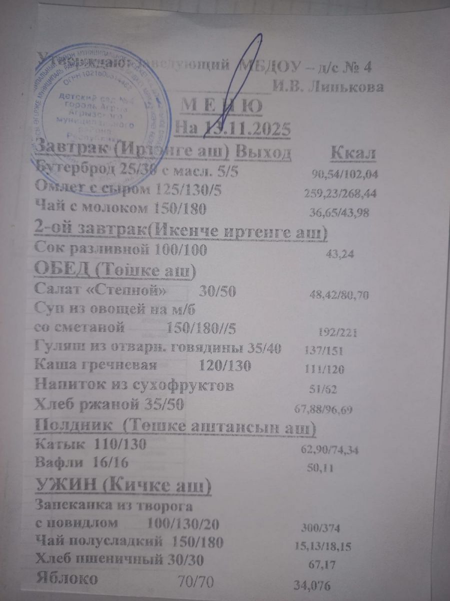 Меню с 12 часовым прибыванием 2024-2025 (лето)